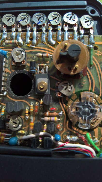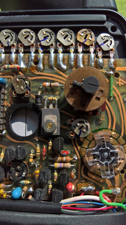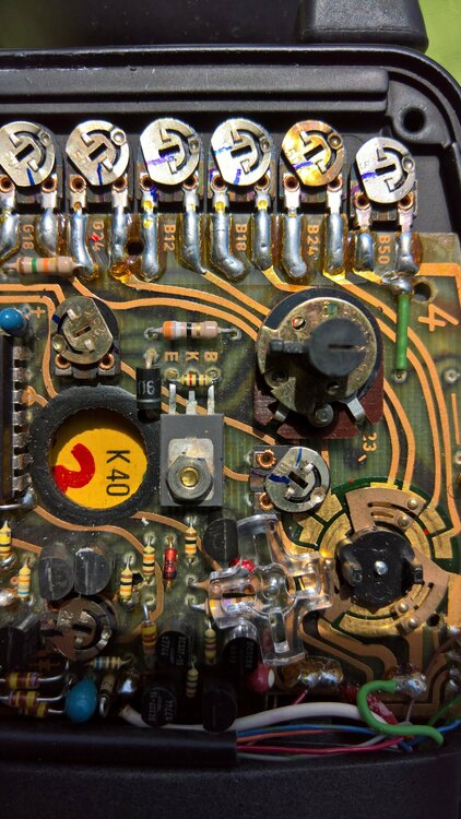 Das Modifizieren meiner Bauer A512 ist fertig. Dank des guten Links von **AndreasH** von Ignacio Benedeti wusste ich schon, dass man die rechte Seite öffnen muss. Aber das war schon tricky: Die Bedienköpfe sind nämlich von innen verschraubt und gehen mit dem Gehäusedeckel ab. Da könnte man schon einiges ruinieren. Die Suche nach dem richtigen Poti dauerte länger. Es ist der vierte ( B12 ) der Reihe von 8 Potis untereinander. Bilder: Die eine A512 mit der normalen Einstellung, sodass ein 100 ASA Tageslichtfilm um eine Blende unterbelichtet ist . Das andere Bild: meine zweite gut erhaltene A512, modifiziert auf 1 Blende Überbelichtung im Vergleich zur anderen. Das Poti habe ich im Uhrzeigerfilm um ein winziges Stück weitergedreht. Jetzt fehlen noch Testaufnahmen.