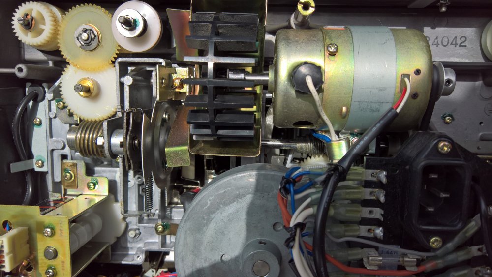 Der Riemenwechsel ist einfach, aber etwas knifflig. Beim Öffnen der Rückwand vorher den Knopf für "speed" abziehen, nachher den Stecker für den Lautsprecher. Abmontieren musst du ganz oben links das mittlere größere Kunststoff-Zahnrad ( nur das eine ). Nur so bekommst du den Riemen heraus und den neuen hinein! Achte darauf, dass der Sicherungsring nicht wegspringt! Auf die Platine unten solltest du ein Tuch legen, sonst müsstest du lange den Ring suchen, wenn er herunterfällt. Auf dem Foto ist ein Yelco DS 830MS ( gutes Stereogerät ) abgebildet. Dein Gerät dürfte ähnlich ausschauen.