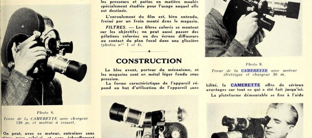 Ja, doch, auch zur Caméflex, die ursprünglich Camérette hieß, gab es Federantrieb. Es gab sogar zwei Federmotoren, einen mit 12 und einen mit 30 Meter Durchzug. La Cinématographie Française, no 1167, 27. Juli 1946, S. I-II-III