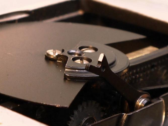 Jean-Louis hat Recht, wenn man den Standpunkt des Herstellers einnimmt. Ich will bei meiner Kamera, daß der Film nach Norm geführt wird, also mit der rechten Kante gegen feste Anlage läuft und auf der linken Kante angefedert wird. In der Kopiermaschine wird das wiederholt und im normgerechten Projektor ebenfalls. Also unternehme ich etwas: Ich befestige den Rahmen auf der rechten Seite mit Lötzinn und mache die Blattfeder neben dem Greifer unwirksam. Gegenüber schleife ich die Blattfedern an, schwäche sie. Ihr seht zwei feine Rillen. Das Rähmchen ist recht stabil, hartverchromtes Stahlblech. Die Fensterplatte hat nirgends mehr als 15,92 mm Breite. Fensterplatte und Zwischenblech sind flach überschliffen: Beim Zwischen- oder Abstandblech (shim) seht ihr an der linken unteren Ecke, daß sie da dünner ist. Die Schleifscheibe hat nichts abgetragen. Das spielt überhaupt keine Rolle. Das Auflagemaß ist 17,520 mm. Zuletzt will ich die lästigen Abrutscher auf dünnerem Film nicht mehr haben. Gigabitfilm 40 ist halb so stark wie gewöhnlicher Film und der Schleppgreifer neigt dazu, aus dem Perforationsloch zu springen. Als Abhilfe bekommt der Greifer eine ausgeprägtere Spitze: Diese H-16 läuft nun zum ersten Mal in ihrem Leben, wie es sein muß. Die Perforation steht bockstill, wenn ich laufenden Film beobachte, die Einfädelung funktioniert perfekt, nur die 8-1-Welle dreht unrund. Das tut sie aber schon, seit ich die Kamera gekauft habe, das war 1985, wenn ich mich recht erinnere. Jemand hatte wohl versucht, den Querstift zu entfernen, um das Werk total zu zerlegen, und ist dabei falsch vorgegangen. Die 1-1-Welle läuft sehr gut rund. Ich habe vor, einen quarzgeregelten Motor zu beschaffen, vielleicht noch ein Magazin, um ein Mal 800 Fuß Film ununterbrochen belichten zu können. Das sind 22 Minuten bei Tempo 24. In meiner gegenwärtigen finanziellen Lage sind das Wünsche. Ich werde mich dagegen wehren, daß ich die Werkstatt liquidieren soll. Rechtlich verstößt man beim Staat nach drei Monaten gegen Treu und Glauben, handelt unverhältnismäßig, greift ins Eigentum Dritter ein und verletzt die Gleichheit, denn einem Bauern nehmen sie die Lebensgrundlage nicht weg. Verfassungswidrig entwürdigend ist auch Mißachtung des Berufs. -