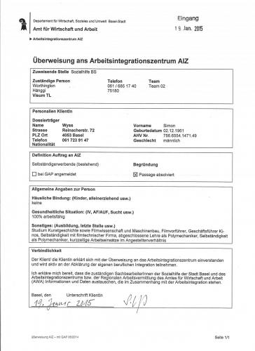 Tatsächlich gehört mir das Ganze nicht, ab Herbst 2011 habe ich mit geliehenem Geld Dinge zusammengetragen, von denen ich erst nicht recht wußte, wie sie sich ergänzen werden. Ein Jahr später beschloß ich, von der Arbeitslosenkasse wegzukommen. Jetzt ist die Frage, ob der Staat gegenüber privaten Gläubigern Vorrang habe. Ich kann den Darlehensvertrag vorlegen. Was ich vom Privatkonkurs her weiß, ist, daß die Gläubiger nicht alle gleichberechtigt sind. Schulden bei Privaten, die nicht eingefordert werden, spielen dabei keine Rolle. Erstrangig sind Steuern. Hier aber wird das widersprüchliche Sozialhilfegesetz angewendet. § 2: Die öffentliche Sozialhilfe hat die Aufgabe, bedürftige und von Bedürftigkeit bedrohte Personen zu beraten und ihre materielle Sicherheit zu gewährleisten sowie die Selbständigkeit zu erhalten und zu fördern. Die Sozialhilfe fördert die Möglichkeiten zur Selbsthilfe mit dem Ziel der sozialen und beruflichen Integration. Sie vermittelt und ermöglicht den Zugang zu Angeboten, die diesem Ziel dienen. Die Sozialhilfe erstreckt sich auf die Bereiche der persönlichen, materiellen und generellen Sozialhilfe. (Dieser letzte Satz kann nur von Juristen verstanden werden.) § 5: Die Organe der Sozialhilfe haben bei ihrer Tätigkeit vorrangig die zumutbare Selbsthilfe sowie die persönliche und wirtschaftliche Hilfe anderer Institutionen und Dritter zu berücksichtigen, sie zu vermitteln und nötigenfalls anzuregen und zu fördern. § 8: Bei der Festlegung der wirtschaftlichen Hilfe sind Einkünfte einzubeziehen, bewegliches Vermögen zu verwerten und unbewegliches Vermögen zu belehnen oder zu verwerten. Verfassungswidrig ist die rücksichtslose Anwendung dieser Paragrafen über das Rechtssubjekt, die Person, hinweg. Das ist das Entwürdigende. Beruf, Lebensplan, die Selbstbestimmung werden mißachtet, finde ich, wenn man § 8 einfach durchsetzt. Cui bono, wer hat etwas davon, wenn ich die Werkstatt auflöse? Sie sind auch mit dem Argument gekommen, daß ich mit der Werkstatt den ortsüblichen Stundenlohn von Fr. 15 nicht erreicht habe. Das kam mir schon seltsam vor, denn man weiß beim Sozialamt, zumindest haben sie es auf Papier vorliegen, daß ich ab 1. August 2014 eine 100-%-Anstellung hatte. Keine Selbständigkeit mehr. Ich habe die Werkstatt geschlossen. Das Namensschild außen am Haus habe ich auch weggenommen und Werbung keine mehr betrieben. Es gibt keinen Telefonbucheintrag, keine Webseite. Ich bin auch nicht im Handelsregister eingetragen, auch wenn sie etwa sieben Mal danach gefragt haben. Im Handelsregister stehen die ehemalige Firma und der Vermerk Gelöscht. Das haben sie nicht begriffen. Sie sind noch im Handelsregister! Echt, so viel Unfähigkeit auf einem Haufen verkrafte ich nicht. -