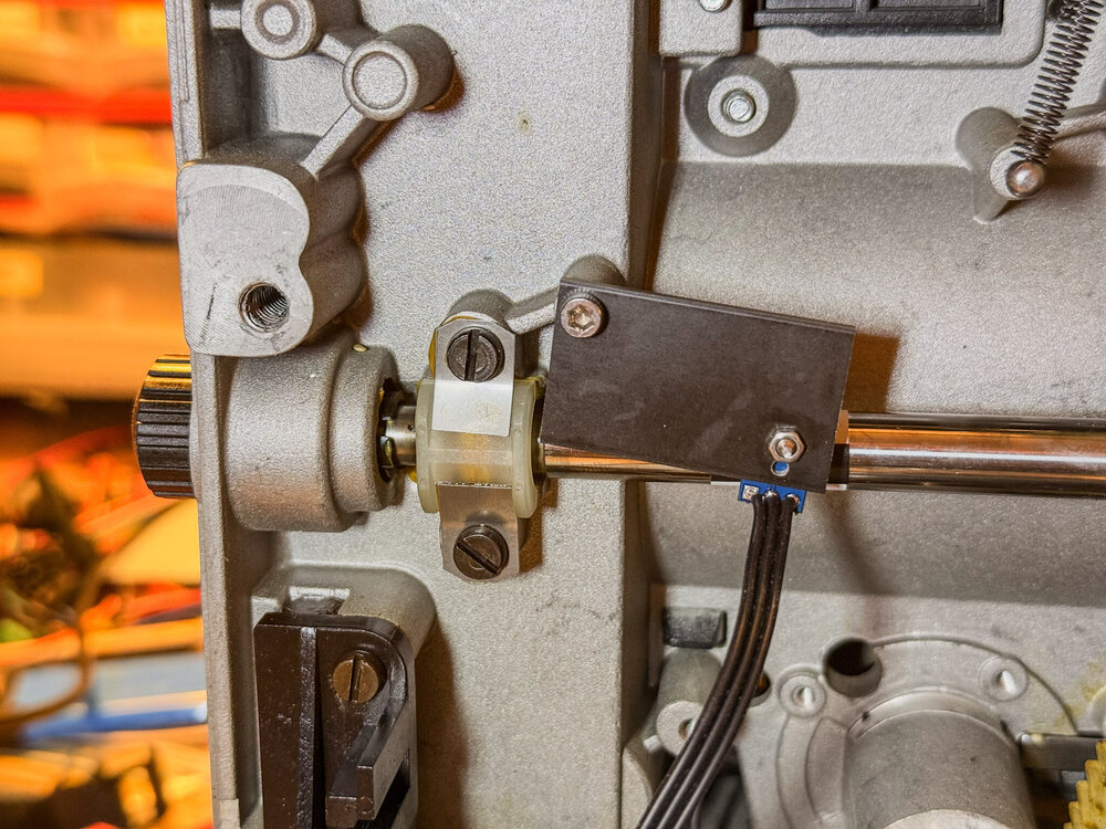 So, die Modifikation ist wirklich einfach und ich hab sie jetzt noch mal ausführlich durchgemessen und getestet. Der verwendete Gleichrichter ist unkritisch, es muss kein Schottky sein. Schaltplan: Der Schaltplan sieht komplizierter aus als der Anschluss in echt: Also weiss/blau vom Motor an die "~" Anschlüsse, schwarz/rot vom Motor and +/- und abschliessend Den "Motor"-Anschluss vom Controller-Board auch an "~" hängen. Es eignet sich jeder Gleichrichter mit genug Leistung. (Mindestens das Doppelte der Motorleistung: 36V / 2A, also >80V / >4A) Wer so etwas nicht in der Bastelkiste hat — https://www.amazon.de/dp/B079KC9H3S ist vierfach überdimensioniert, https://www.amazon.de/dp/B0B4G4WWP5/ sogar 20-fach überdimensioniert, eignet sich aber auch für Leute mit wenig Lötmut und lässt sich dank des Lochs gut befestigen. Bin gespannt, wieviel langsamer das Scannen mit diesem Motor am Ende ist, dafür baue ich jetzt keinen ganzen Projektor um, das müsst ihr dann hier berichten 🙂 -