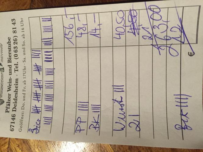 Reinhard, ich war den ganzen Tag da! In keiner Kiste verkrochen, der Rucksack war ja schon um 11 Uhr quasi voll. Wir haben uns wohl einfach sensationell verpasst. Mit Silas, Schokoprinz und Thorsten habe ich gerade abschließend 9 Stunden in einer Weinstube gesessen und 58 Bier verhaftet. Gefühlt waren es zwei Stunden... In D'heim ticken die Uhren eben anders. Es ist wunderbar hier. :)