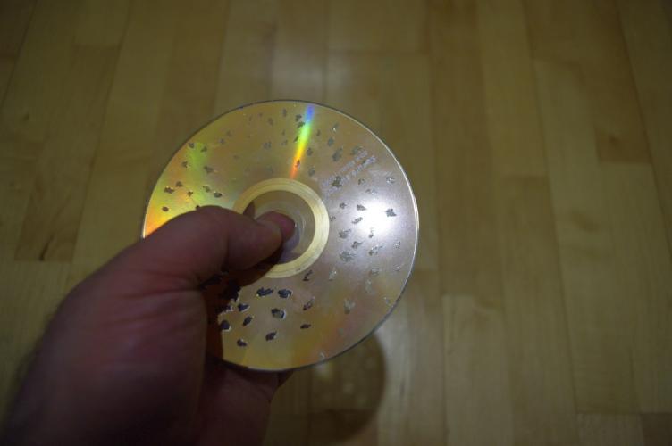SHIT! Heute früh mache ich den Kleiderschrank auf, in welchem ich auch unter anderem (aus Platzmangel an anderer Stelle) ein paar CDs gelagert habe und was kommt mir da entgegen? Ein Schwarm von Motten. Und dieser Schwarm von Motten hinterließ das hier: Von Motten zerfressene CDs. In einem BIO-Magazin hab ich vor ein paar Monaten mal gelesen, dass vor Jahren schon mal testweise Genmais in Deutschland angebaut wurde und in Folge dessen an Bienen und anderen Lebewesen, die mit dem Genmais in Berührung kamen, Mutationen beobachtet wurden. Diese Mutationen verursachen, dass die Tierchen plötzlich nicht mehr das tun, was sie normalerweise tun sondern ihr Verhalten ändern und ihre Gewohnheiten umstellen. Nun sind wohl die gewöhnlichen Kleidermotten (Tineola bisselliella) dazu übergegangen, sich von den organischen Farbstoffen von digitalen optischen Datenträgern (CDs, DVDs und Blurays) und deren Trägermaterial zu ernähren. Damit hätte sich eine völlig neue Spezies entwickelt. Die Tineola Polycarbonatus. Gegen diese neue Art von Motten helfen leider auch keine Mottenkugeln, aber was zu helfen scheint, ist, wenn man die Datenträger mit Spiritus einreibt. Das hält die Motten offenbar ab (gerade ausprobiert). Leute, prüft Eure Bestände an CDs und DVDs auf Mottenbefall! Und Rudolf, mach schnell mit Deiner Kopierstation, ich möchte meine ganzen DVD und Bluray-Filme auf Super8 für die Ewigkeit sichern bevor sie den Motten zum Opfer werden!