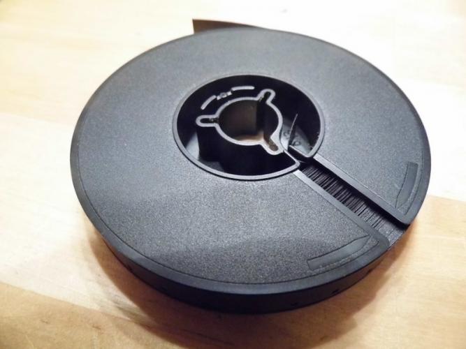 Ein fast überflüssiger Test Ich hab mich eigentlich schon lange gefragt, wieviel von einer richtig vollen DS8 Tageslichtspule (7,5m) passt auf eine 15m S8 Laborspule. Die beiden Spulen haben ja unterschiedliche Aufgaben. Die Tageslichtspule soll so klein wie möglich sein und dabei so viel Rohfilm aufnehmen können wie möglich, aber bei geringstem Platzbedarf, damit man sie in sehr klein designte Kameras einlegen kann und die andere soll den entwickelten Film plus 2m Weißfilm aufnehmen können und darf ruhig ein bißchen größer sein und etwas mehr "Rand" haben. Meine Vermutung: die Laborspule ist etwas großzügiger als die kleine Tageslichtspule. Aber um wieviel großzügiger? Ein kurzer Test solls zeigen. Ich rolle auf die Tageslichtspule so viel 16 mm Abfallfilm bis die TL-Spule wirklich bis zum Rand voll ist. So eine Beladung wäre natürlich im Ernstfall reiner Unsinn, da man bei den äußeren Lagen ja dann schon seitlichen Lichteinfall befürchten müsste. Aber als Test ist das schon OK so, würde ich noch Rand auf der Spule lassen, müsste ich mich ja erst mal fragen wieviel Rand denn sinnvoll wäre, und das wäre wiederum eine rein subjektive Einschätzung meinerseits. Also Tageslichtspule voll gefüllt bis zum Rand. Jetzt wieder abgewickelt und spaßeshalber mal nachgemessen, obwohl das Nachmessen hier keinerlei Bedeutung hat, da Filme ja unterschiedlich dick sind und somit die Länge an Film, die man auf eine kleine TL-Spule wickeln kann, ganz und gar eben von seiner Dicke abhängt. Aber egal. Der Abfallfilm, den ich verwendete, ließ mich 11,60 m auf die TL-Spule wickeln. Nächster Schritt: 16 mm Film splitten. Dass es eigentlich echter 16 mm Film ist, spielt ja hierbei keine große Rolle. Und da es eh Abfallfilm ist, ist es auch nicht weiter betrüblich. Dann die beiden Hälften koppeln. Und auf die 15 m Laborspule aufwickeln. Große Überraschung (für mich): Die Laborspule ist genauso exakt bis zum Rand voll, wie es die TL-Spule war. Das hätte ich nicht gedacht. Ich hätte wie gesagt erwartet, dass auf der Laborspule noch ein bißchen Platz frei ist (für den Weißfilmvorspann, der noch dran müsste und ... naja dafür eben, dass sie dann immer noch nicht so brechend voll ist und Gefahr läuft überzulaufen). Auf der anderen Seite eigentlich irgendwie konsequent. Die TL-Spule fasst komplett vollgefüllt genau so viel wie die Laborspule.