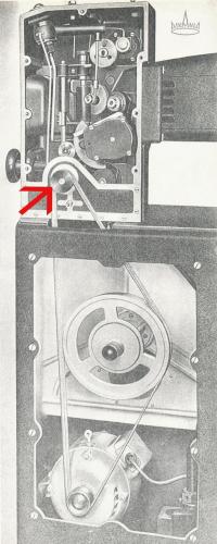 Hallo Freunde, wir suchen ein Ersatzteil für einen ASKANIA-APXII - Projektor, genauer gesagt die obere Führungsrolle, über die die 4 Antriebsriemen laufen. Ich meine, fast dieselbe Rolle sitzt auch unten auf dem Motor. Auf dem folgenden Schnappschuss habe ich das Teil mal markiert. Hat jemand ne Idee? Vielen Dank und flimmernde Grüße Uwe