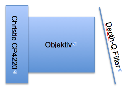 Depth-Q-Filter falscher WinkelDanielJordi antwortete auf DanielJordi's Thema in Digitale Projektion In diesem Fall ist der Filter im Vertikalen Winkel zum Obiektiv hin geneigt. Habe noch eine sehr schematische zeichnung angehängt, damit du auch siehst wie ich es meine... sonst kann ich auch mal nur ein Foto von unserer Maschinerie machen, wenn es dir, oder auch jemand anderem hilft?! Neigt man den 3D-Filter um das Ghosting zu reduzieren? wenn der Winkel da nicht stimmt würde in diesem Fall einfach der Ghosting-Effekt reduziert oder erhöt, stimmt das? Bild, Lichtstärke auf der Leinwand und 3D effekt würden gleich bleiben? Sorry für meine vielen Fragen würde mich einfach sehr Intressieren. Danke für die Hilfe DanielJordi