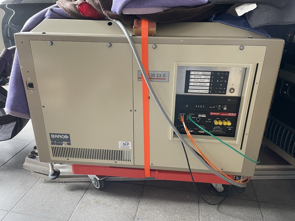 Zum Verkauf steht ein Serie 2 Kinoton Projektor mit Zubehör wie Server und Soundsetup. Die Anlage ist auf rollbaren Paletten installiert und damit transportabel. Vorbereitet für einen Einsatz im Open Air Umfeld oder stationär im Kino. 1x DCP 30 SX2 Im Unterschrank, der separiert auf einer zweiten Palette aufgebaut ist befinden sich noch: 4x Endstufen Crown 1x Dolby DSS200 mit 6TB Speicher 1x CP 750 1x Crown DSi 8m 1x KRS Box Kinoton Es sind alle Teile wie Xenonkolben, Objektiv und Co sowie Monitore vorhanden. Es muss lediglich alles einmal vernünftig verkabelt und eingestellt werden. Die gesamte Anlage hat sehr wenige Betriebsstunden, lief in einem Einsaalhaus mit 80qm Leinwand von 2014 bis 2017. Seitdem wird Sie nur noch regelmäßig an den Strom angeschlossen um Defekte zu vermeiden. Preis und Rückfragen per Privatnachricht. Standort Bad Neuenahr-Ahrweiler