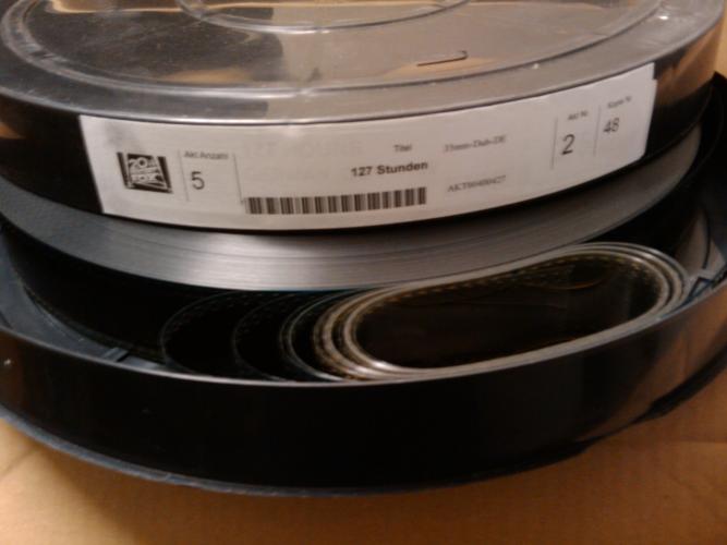 127 Stunden ... #48 ... Startband in jeder Aktdose nur beigelegt, alle schön platt ... vorbildlich weich gewickelt, feine matte Filmoberfläche ... fette Schaltfolien ... und nen Riss im Abspann behebt man auch nicht beim Abziehen ?! Wundert einem echt nichts mehr...