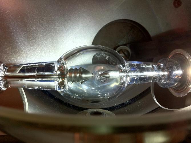 Ich war ja eigentlich durch die Stromzangenmessung der Meinung, dass der Ripple unter 10% und somit i.O. ist. Doch inzwischen... Ist eine Strommesszange überhaupt geeignet, um den Ripple zu messen? Wenn ich das XBO-Dokumentations-PDF, das ich im Netz gefunden habe, richtig verstehe, kann der echte Ripple um den Faktor 10 höher liegen... Ich habe vorhin mal ein Foto von dem älteren Kolben gemacht. Ich habe das bislang ja eigentlich als "Gebrauchsspuren" abgetan, aber inzwischen bin ich doch etwas skeptisch... Ist das noch normal (der Kolben lief bei mir, wenn es hoch kommt, 45 Minuten)? Und wenn nicht: Ist das schon schlimm genug, um die Zündprobleme zu erklären?
