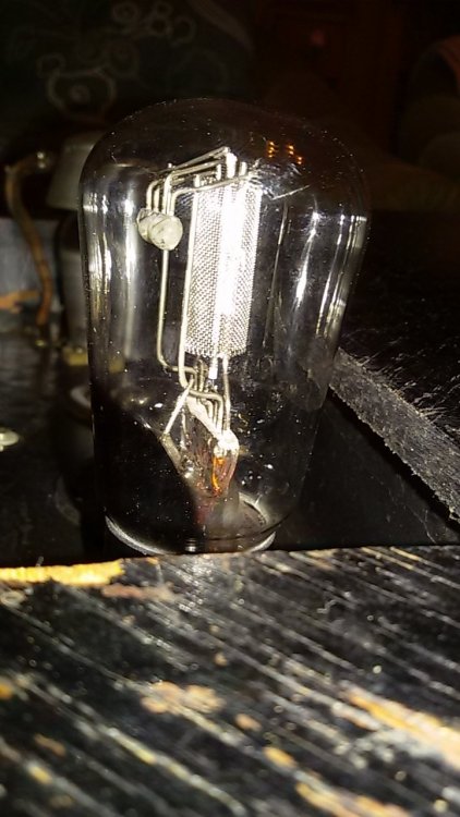 1. Hallo zusammen, erst einmal Danke für Eure Rückmeldung. Ja, das Teil stammt aus den ca. 30er - 40er Jahre. Habe den Verstärker mal "unbelastet" -> ohne Röhren- eingeschaltet und messe in der Tat die 4Volt Heizspannung. und zwar an den gelben Leitungen der drei Sockeln, diese sind ja parallel geschaltet. Nur ist mir entfallen ob die Heizung der Röhren Gleichspannung oder Weschselspannung ist. Auf dem Foto Nr.2 ist der rechte Anschluss definitiv für die Fotozelle, der mittlere Anschluss ??? - möglicherweise für die Tonlampe (6V/ 5A) , Linker Anschluss für Lautsprecher ?? Foto Nr. 3 von Rechts nach Links Netzschalter, Sicherung, Erdung, 2-Stift anschluss ??, 4-Stift anschluss?? Keine Ahnug wofür siese sein könnten. Foto Nr. 4 hier habe ich mal die dem Gerät beiliegenden Röhren eingesetzt wobei ich leider auch nicht weiss ob es so richtig ist. Links die AC2 mit Abschirmkappe. Foto Nr. 5 wird sehr wahrscheinlich eine Gleichrichterröhre sein, leider ohne Beschriftung..RGN 1064?? Falls noch mehr Info's benötigt werden bitte Nachfragen. Gruss Jürgen