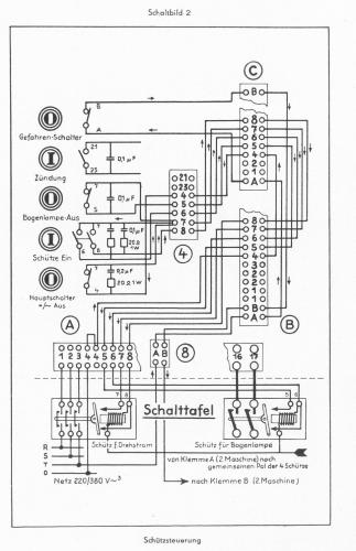 Bei einer unverbastelten Dresden ist das folgendermaßen: Von einer Phase aus geht es zuerst zum Protektorschalter (hinterstes Quecksilberschweinchen im Kopf). Dieser schließt den Stromkreis, sobald der Überblendschalter nach rechts gedreht wurde wird nur abgeschaltet, wenn der Bügel neben der Vorwickelrolle hochgedrückt wird, nicht beim Überblenden! Dannach zum Motorausschalter, der hinten an der Anlasserwelle sitzt, das ist ein Öffner, d.h. im ungedrückten Zustand leitet er. Von da aus weiter zum Luftzwangschalter. Entweder ist dieser mechanisch betätigt wie beschrieben oder 22 und 25 wurden schon verbunden. Von da weiter zum eigentlichen Magneten. Dieser hat 3 Wicklungen: "Eingang", 220V und 380V, je nachdem welches Netz man hatte, konnte man so die Spannung wählen. Wie es allgemein gemacht wurde, weiß ich nicht, bei meinen war die 230V Leitung am Nullleiter angeklemmt, alternativ würde sonst die 380V Wicklung an einer anderen Phase hängen. Also zur Fehlersuche die Klemmen der beiden Quecksilberschalter finden und auf Durchgang prüfen, so auch beim Motorschalter, wenn die Spannung bis zur Spule kommt (einfach mit Elektrikerschraubenzieher dranhalten), diese aber nicht anzieht, dann ist der Stromkreis nach der Spule unterbrochen, kann dann ja nicht viel sein. Am besten noch prüfen, ob alle im Schaltplan dafür zuständigen Kabel durchgang haben, kann ja sein das da jmd was gebastelt hat. @cafekino: Der Abbrandschalter hängt nicht in diesem Steuerkreis! Dieser hängt über die Klemmen 10 und 11 in Reihe zur zweiten Maschine und zu den Fallklappen, die über Nienderspannung geschatet werden. Zwar habe ich den Schalter selbst noch nicht zerlegt, würde ihm aber vermutlich keine 230V zumiten wollen. Gruß und schönes Wochenende Hannes