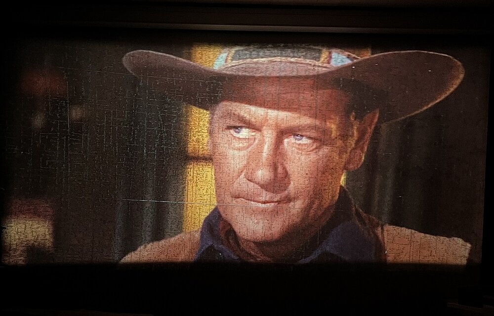 Ich glaube, so ähnlich kann man den Effekt auch erklären... durch die feuchte Lagerung ist der Träger aufgequollen und die Farbschicht ist gerissen. Bitte korrigiert mich, wenn ich hier falsch liege... Den verstehe ich nicht ... auf dem Bild sieht man Joel McCrea, wenn das das Problem ist... -