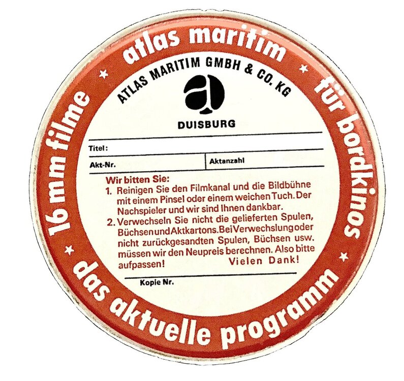atlas-maritim, gehörte auch zum 16mm-Verleih von Atlas-Eckelkamp/Duisburg und lieferte Filme für die Bordkinos von Schiffen.