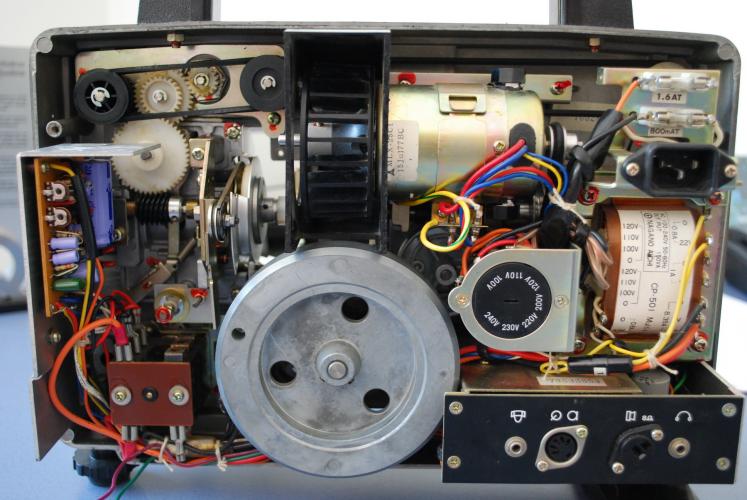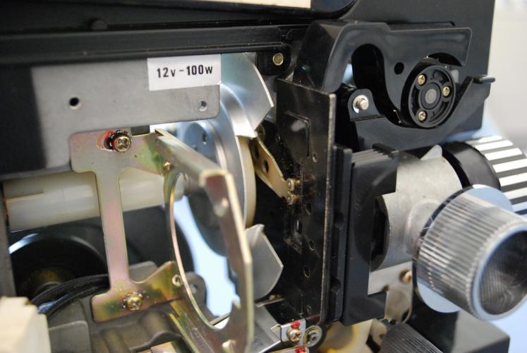 9. Einen sonnigen Gruß an alle Schmalfilmfreunde! Mein o.g. Voigtländer Dynalux 8 sound Super 8 Projektor, der baugleich mit dem Rollei P8400 ist, hat von mir bereits einen neuen Motorriemen eingebaut bekommen. Das hat auch ohne größere Zerlegearbeiten geklappt. Der Projektor läuft aber sehr laut und irgendwie rumpelig. Ich vermute, daß sich auf der Kunststoffscheibe, die hinter der Flügelblende sitzt und das Greifersystem betätigt, ausgehärtetes und verharztes Fett befindet. Verschiedene Ansätze an diese Scheibe heranzukommen, haben bisher nicht weitergeführt. Kann ich irgendwie die ganze Antriebswelle, an die die Einheit aus Scheibe und Flügelblende montiert ist, herausnehmen? Vielleicht kann jemand weiterhelfen? Danke! Andreas