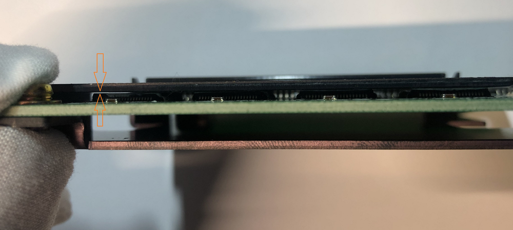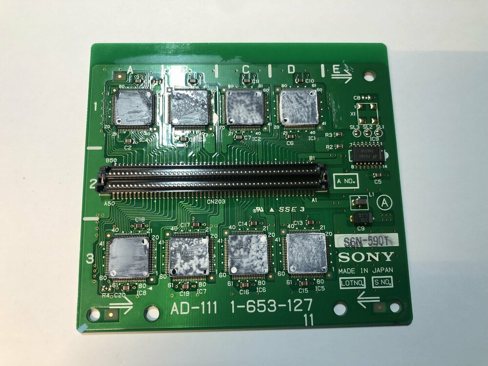 Also es lag an der AD-111 Karte, welche auf dem DEC-77 Board sitzt. Mir ist aufgefallen, dass einige Mikrochips am AD-111 keinen Kontakt mit dem umgebenen Metallkörper haben und anscheinend nicht richtig bzw gar nicht gekühlt werden: Das ist sowohl bei der defekten als auch bei der Ersatzkarte so. Auf Filmtech waren ebenfalls einige Fälle wo sich diese Karte verabschiedet hat und ich nehme an es liegt daran dass sie heiß wird. Entweder wird die von Sony verwendete Paste auf den Chips mit den Jahren so dünn, dass der Kontakt zum Metallblock unterbrochen wird oder es ist ein Konstruktionsfehler. Ich habe die alte Paste entfernt und neue + ausreichende Wäremeleitpaste aufgetragen so dass jetzt alle Chips Kontakt mit den Kühlblock haben.