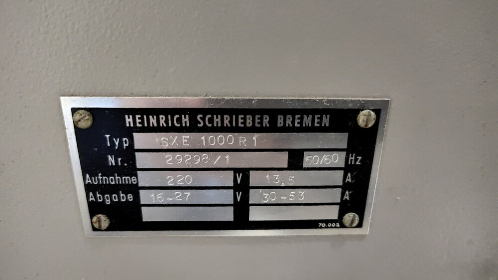 1. Abzugeben gegen eine Spende für die Kaffeekasse ist ein Gleichrichter von Schrieber, Details bitte den Fotos entnehmen. Das Gerät stand mehrere Jahren trocken eingelagert, ist aber verstaubt. Beim Ausbau war er noch voll funktionsfähig und hat nur etwa 300 Betriebsstunden gelaufen. Der Standort ist 44894 Bochum, im 1.OG (kein Aufzug!). Das Gerät ist schwer, bitte einen Helfer zum tragen mitbringen. Kontakt per PN.