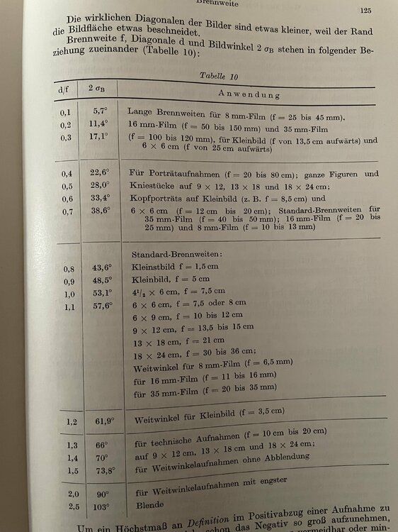 Das ist so nicht richtig. Das gilt so noch nicht einmal für KB (d/f = 0,9) und erst recht nicht für Film, wo eher ein d/f von 0,7; also ein Bildwinkel von unter 40 Grad für die Normalbrennweite definiert ist. @fcr Der Grund wurde hier schon mehrfach diskutiert, es sind die Sehgewohnheiten und eben der Charakter des bewegten Bildes im Unterschied zum Standbild, die beim bewegten Bild einen kleineren Bildwinkel definieren. Aus „Das photographische Objektive - Die wissenschaftliche und angewandte Photographie, Band 1, 1955):