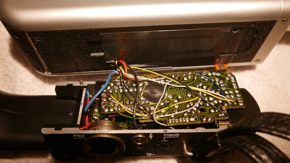 Am Ende habe ich alle Funktionen des Handgriffes getestet. Alle Impulsausgaben (Pilotton allerdings nicht) Blitzkontakt Fremdversorgung Elektrischer Fernauslöser Mechanischer Fernauslöser Merkwürdigerweise hat die Kamera übrigens nicht sofort fehlerfrei gearbeitet, sondern zunächst das alte Fehlerbild gezeigt. Nun aber arbeitet sie einwandfrei. Ich würde mich sehr über einen Schaltplan zur Nizo Professional freuen, ich finde bei mir keinen...