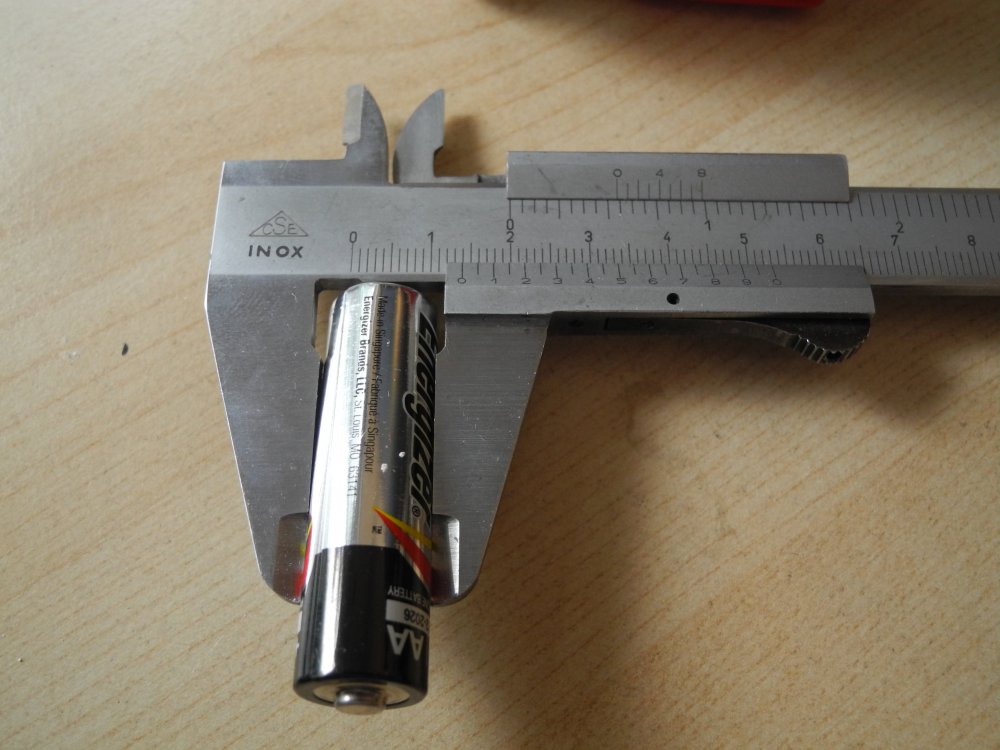 Bei meiner passen AA-Zellen von Energizer, mit der Schieblehre messe ich einen Durchmesser von 14mm. Allerdings scheint die Box auch schon geschrumpft zu sein, vom Vorbesitzer hatte sie einige Risse. Die Lösung mit den Lipos gefällt mir aber sehr gut, wenn das Kästchen erst mal zugeschraubt ist, sieht es ziemlich "original" aus - originell ist es sowieso. -