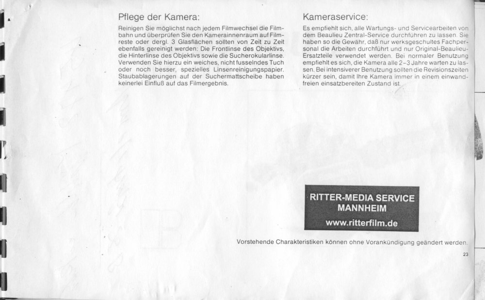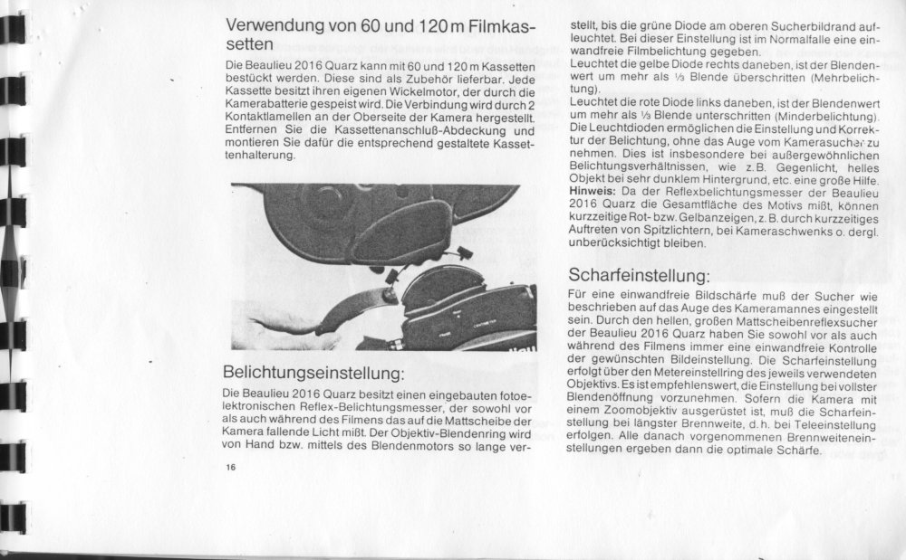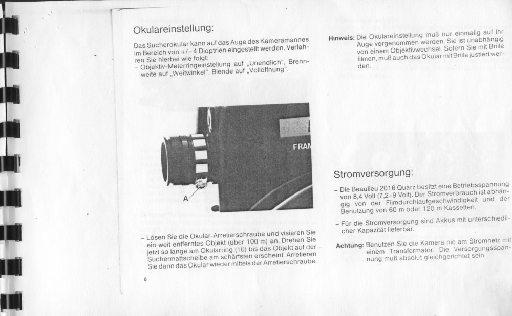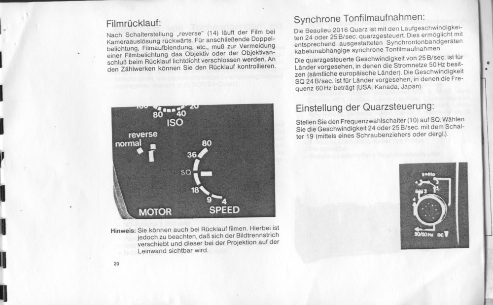 19. Eine BDA hab ich noch, kann ich scannen und hier einstellen. Oder per Mail versenden. Meine machte Zicken bei 18 B/sec und mit 24/ bzw. 25B /s lief sie nicht rund. Das war das untere linke Trimmer-Potentiometer von der 24er-Bande" rechts neben dem Bildfrequenz- Drehknopf... Und: Glückwunsch! Sicherlich eine der feinsten Beaulieu-Kameras... Ja: und ein Service-Manual suche ich auch! Hab nur eins für die R16 Beaulieu_R16_Service_and_Repair_Manual.PDF