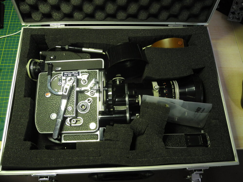 Biete diese Komplettausrüstung, weil ich sie zu wenig nutze: Bolex SBM mit 13x Sucher (sauber), RX-Fader, Vario Switar 16-100 mm, alles funktioniert (auch die Blendenautomatik bzw. der Motorzoom) achromatische Nahlinse, Geli, Zoomhebel mit Drahtauslöser, Oktameter, Adapter für c-mount Objektive, Filterhalter, Handgriff , alles im stabilen Alukoffer. Preisvorstellung: 1900 Euro. Näheres und auch weiterte Bilder per PN.
