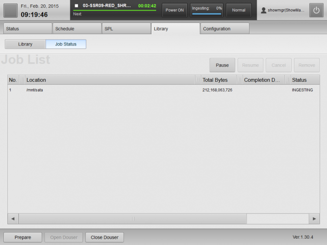 Hallo Tomas, Folgend zwei Screenshots. - ingest_birdman_1.png: Library - ingest_birdman_2.png: Der "für-immer-hängen" Zustand (Job Status) LG valli
