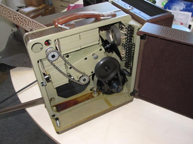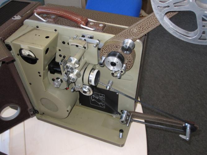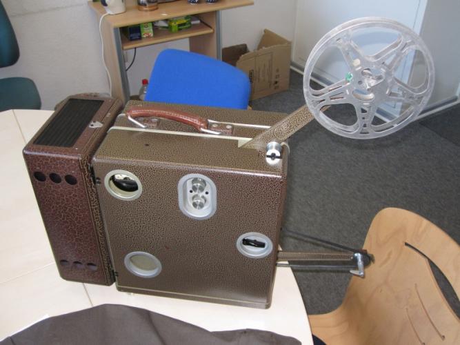 Vielen Dank! Mit der Bezeichnung "TK16" bin ich auch auf ein Thema hier im Forum gestoßen: http://www.filmvorfu...-unterlagen-pp/ Meines scheint, wg. des fehlenden Lichttongerätes, also ein "SK 16" zu sein. Komisch ist nur, daß der Drehschalter am Projektor in den folgenden Stufen geschaltet werden kann: "Aus" - "Verstärker" - "Motor" - "Licht". Und es gibt einen weiteren Schalter: "Tonlampe ein/aus". Wurde das Gerät für den optionalen Einbau eines Lichttongerätes vorgerüstet? Auf jeden Fall werde ich alles reinigen, ölen und dann in Betrieb setzen. Ist die folgende Anschlußart korrekt? 1.) Schiebewiderstand per Schuko-Netzkabel mit der Steckdose verbinden. 2.) Ausgangssteckdose des Schiebewiderstands mit der "Bratwiderstandsgitterbox" verbinden. 3.) Ausgang des Bratwiderstandes per 7-poligem Kabel mit dem Projektor verbinden. 4.) Alles einschalten, dann den Schiebewiderstand langsam hochregeln. Der Gummiriemen ist sehr locker; muß der über oder unter der Umlenkrolle durchgeführt werden? Leider konnte ich keine Bedienungsanleitung im Netz finden... Viele Grüße Gorbi