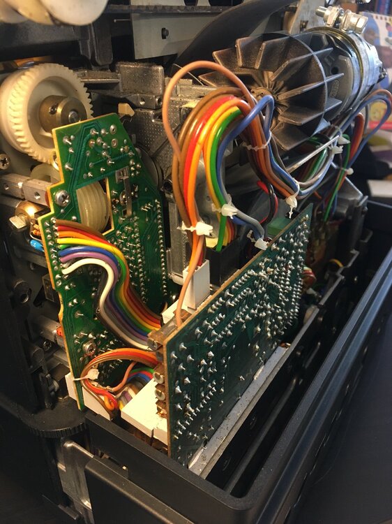 Es sei gebührend erwähnt: Hr Klitzner hat den Visacustic 2000 wundervoll wiederhergestellt. Das Teil musste zwar noch mal an ihn zurückgehen, aber auch, weil durch den Transport ein Folgedefekt durchschlug, der ansonsten vielleicht erst in Jahren durchgeschlagen wäre. Er ist für mich der Doktor Who unter den Reparaturdienstleistern und ein sehr sympathischer Kontakt. Ich kann die Ursache des fehlenden Tons nur extrem laienhaft und ungenau wiedergeben. Der Fehler lag jedenfalls in der Endstufe. Das später auftauchende Problem war so ein rhythmisches Klopfen aus dem Lautsprecher und da lag der Hase bei einem Magnet - einer Magnetspule ? - im Projektor begraben. Auch das ist jetzt in Ordnung, der Ton kommt glasklar. In einem anderen Thread, den ich nicht mehr finde, war die Herausforderung, dass der Visacustic immer wieder aus der Schärfe wandert. Das Manko hat(te) der andere Braun 2000 aus meiner kleinen großen Sammlung. Und da ist Herr Klitzner momentan dran. Es scheint wohl tatsächlich, wie in jenem Thread gemutmaßt, an einer eingeschliffenen Filmführung zu liegen.