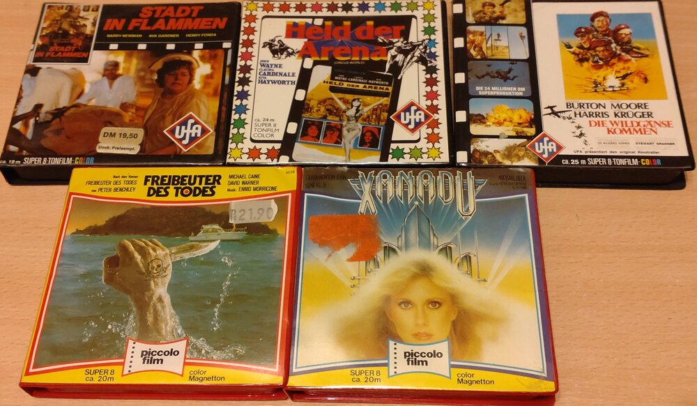 Hallo an Alle! Ich löse meine umfangreiche Super 8 Sammlung (über 45 Jahre Sammelleidenschaft) auf, darunter Komplettlängen wie "Kampf der Welten", "Das 1. Evangelium nach Pasolini"(neu), "Der Kongress tanzt" - Schnittfassungen von Piccolo, Ufa, Marketing, Inter Pathé - Komplett, aber auch Einzelteile - Stummfilme, Trailer usw. - auch in Scope. Es gibt keine Liste, aber ich beantworte gerne jede Suchanfrage - sehe dann nach, prüfe den Film wenn vorhanden und melde mich. Freue mich über jede Anfrage - auf bald...