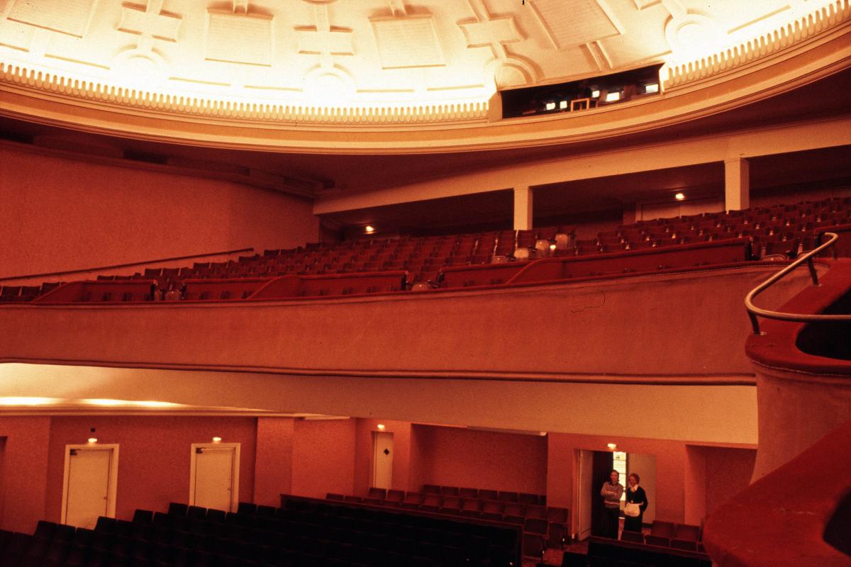 Interessant hierfür dürfte das oben gepostete Bild "Metropol WWK2(2)" sein. Es zeigt einmal den Saal mit der Bühne und den seitlichen Orgel-Attrappen, vermutlich 50ger oder frühe 60ger, hinter der linken befand sich die Welte-Orgel. Das obere der beiden Bilder zeigt dann das Metropol im Zustand bis zum ersten Umbau 1986. Die vor der Bühne aufgehängten seitlichen Vorhänge wurden geschlossen, wenn die große Leinwand aufgezogen wurde. Dadurch musste aber, wie oben beschrieben, die eigentliche Bühne nie baulich verändert. Die Farbfotos von vor dem Umbau 1986 weiter oben, zeigen diese Perspektive nochmal aus verschiedenen Blickwinkeln.