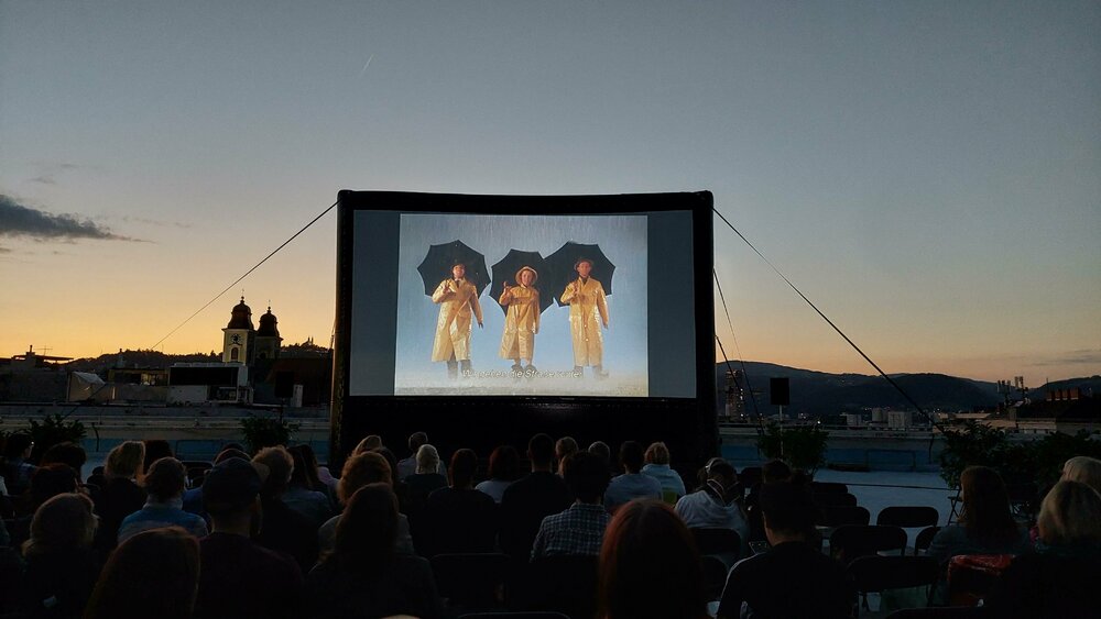 Hallo zusammen. Sommerzeit ist Outdoorzeit. Mich würden Fotos von Sommerkinos in eurer Stadt interessieren und ich fange gleich mit meiner Heimatstadt an. Sommerkino über den Dächern von Linz an der Donau. Gezeigt wurde an dem Abend der Musical Klassiker "Singin in the rain".