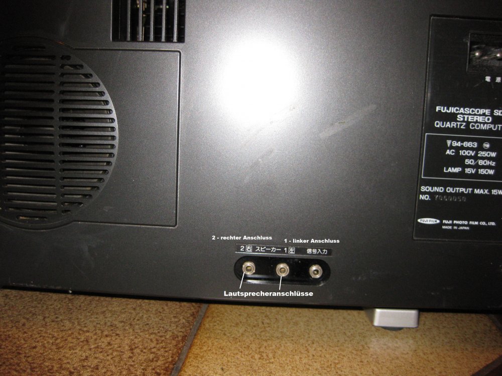 Auf der Rückseite sind 2 Anschlüße für die Lautsprecher.Das sind 2 x3,5mm Klinkenanschlüsse. Um ein Lautsprecher dort anzuschliessen,braucht man ein Adapterstecker.Ich werde mal Bilder machen davon.