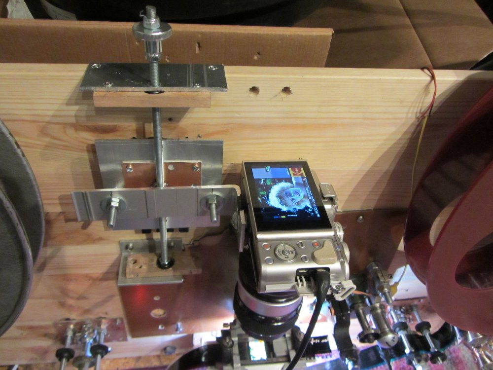 Die Olympus Kamera hat auch Live View sodas man alles über HDMI kabel an ein Klein Fernseher Gerät anschließen kann und Live verfolgen alles, wenn Scmutz da ist stoppen sauber machen weiter scannen.Die Kamera ist sehr Schnell und als Objektiv habe ich eine aus China verwendet durch Adapter Stücke von MFT auf C-Mount und Distanzringe dazwischen.Hier der Link zu den Objektiv: https://de.aliexpress.com/item/32938695953.html?spm=a2g0s.9042311.0.0.27424c4dtQMHMy -