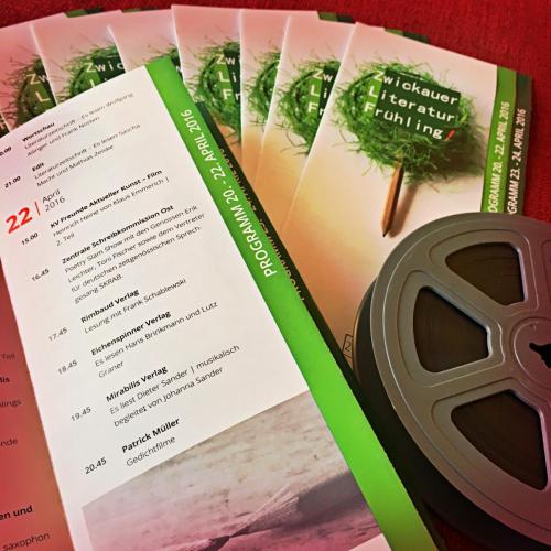 Am Freitag, den 22. April 2016, zeigt der Verein Freunde aktueller Kunst einige meiner Filme im Rahmen des Zwickauer Literaturfrühlings. Analoge Poesiefilme (darunter einige Premieren) in echter 16mm-Projektion und Gespräch. Ich bin anwesend, Interessenten sind herzlich willkommen. Das Gesamtprogramm des Festivals findet man hier. Ort: Freunde Aktueller Kunst, Hölderlinstraße 4, D-08056 Zwickau, Zeit: 20.45 Uhr.