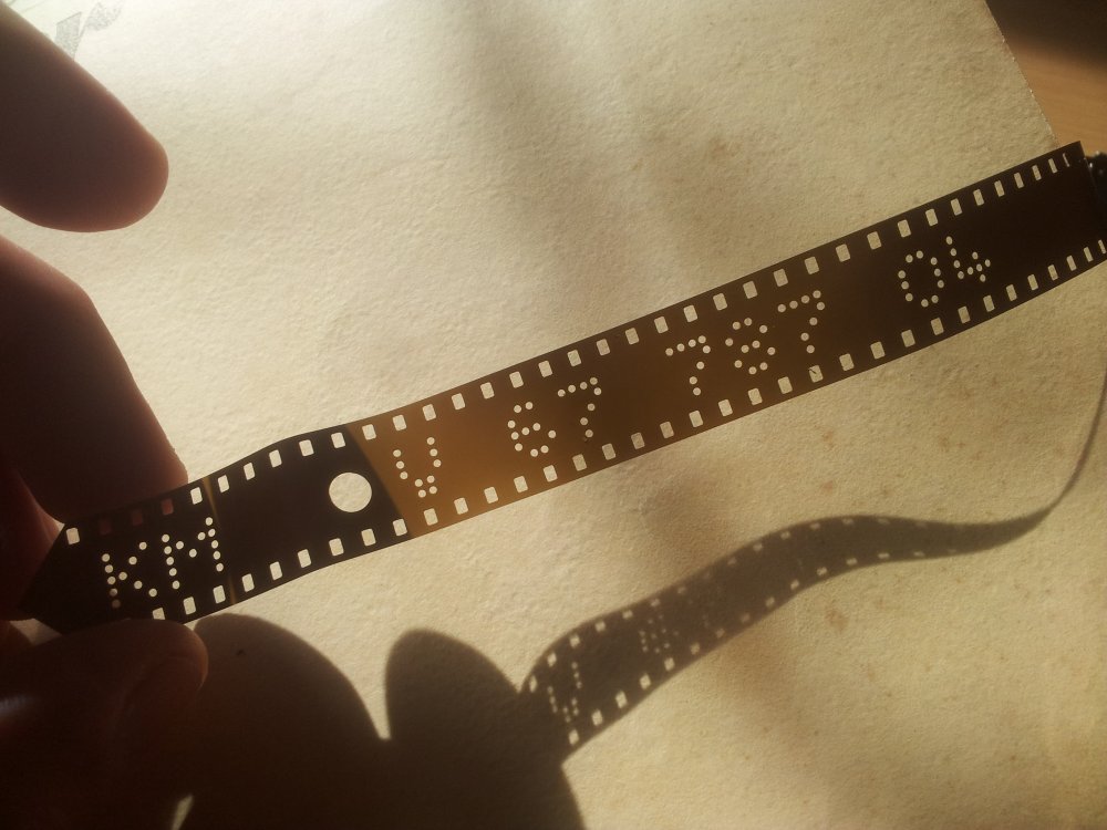 Hallo zusammen, heute habe ich eine von meinem Opa übernommene Doppel 8 Kamera zum ersten Mal näher betrachtet, wobei ich einen offenbar vergessenen Film fand. Kann mir jmd. sagen, welches Filmmaterial das sein könnte und ob der Film wirklich belichtet ist? Ich habe es von den aufgeszeichneten Pfeilen her einfach mal so gedeutet. Die Bilder sind nicht so toll, ging leider gerade nicht anders. Grüße Robert