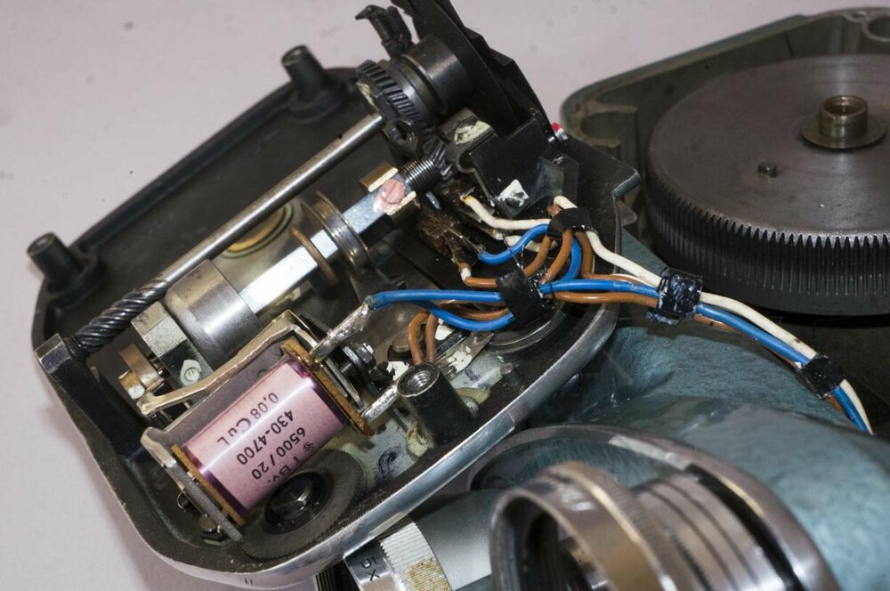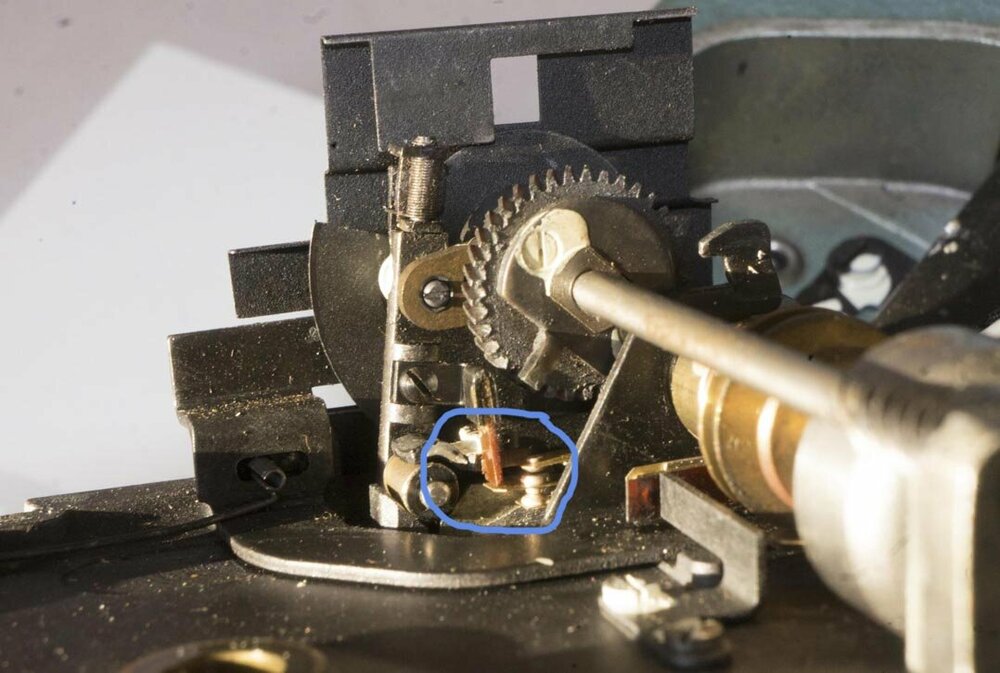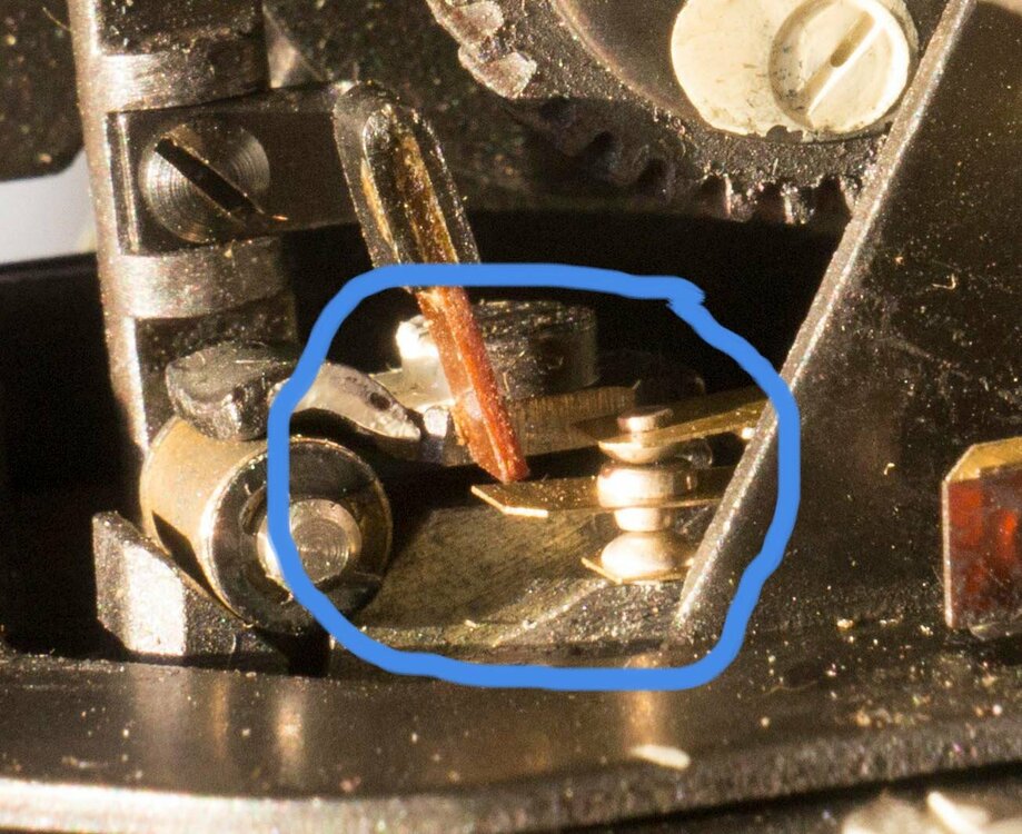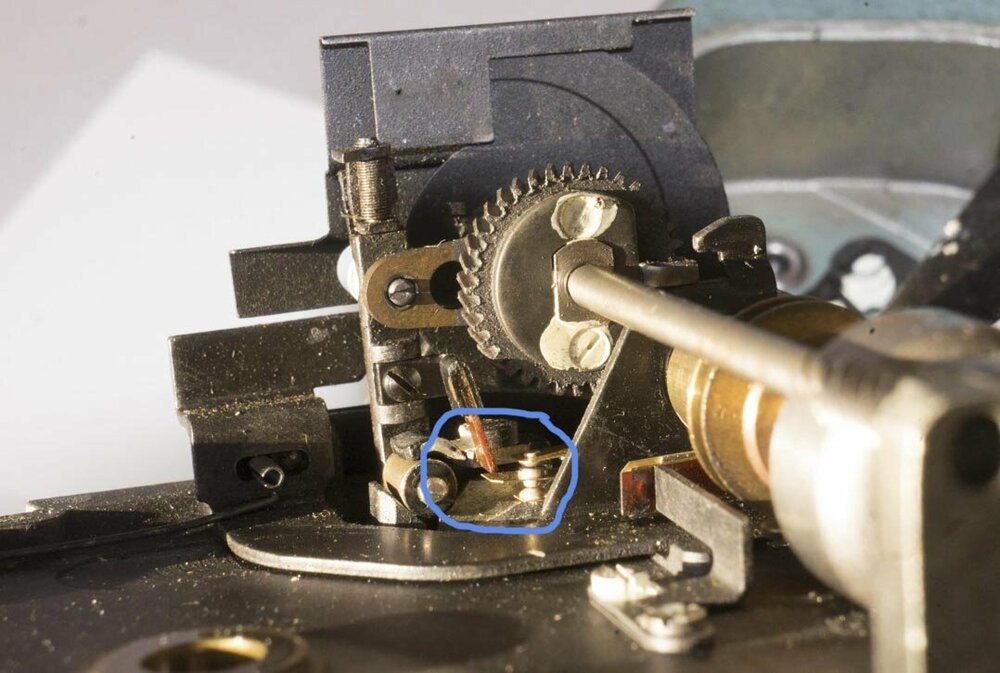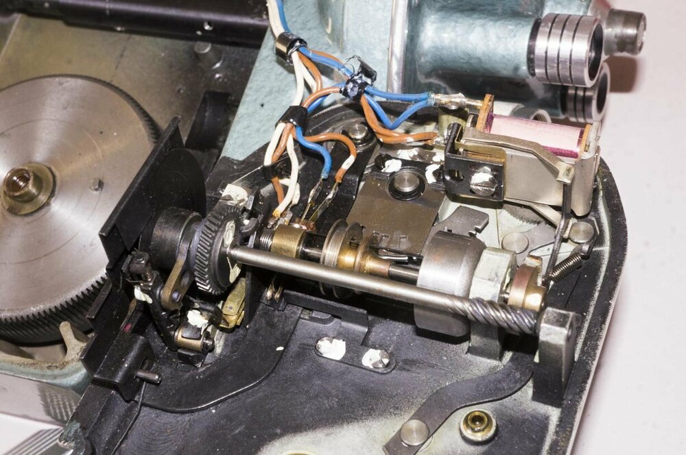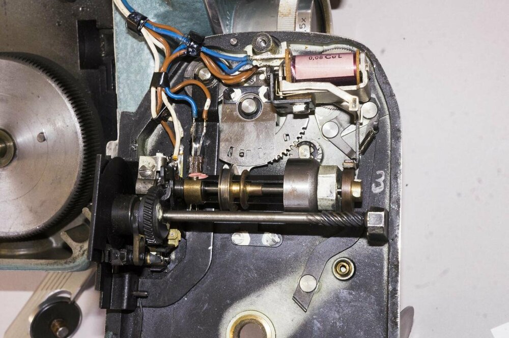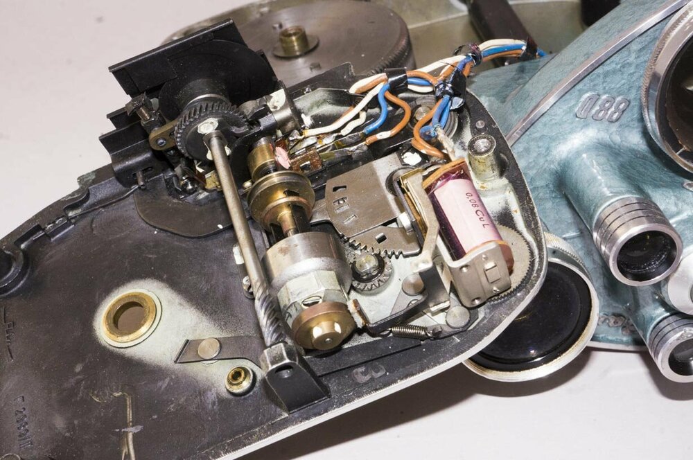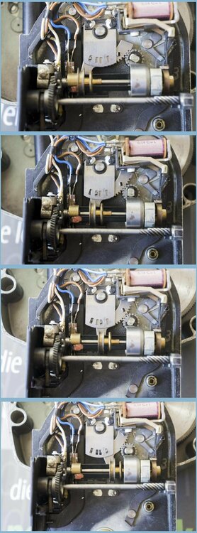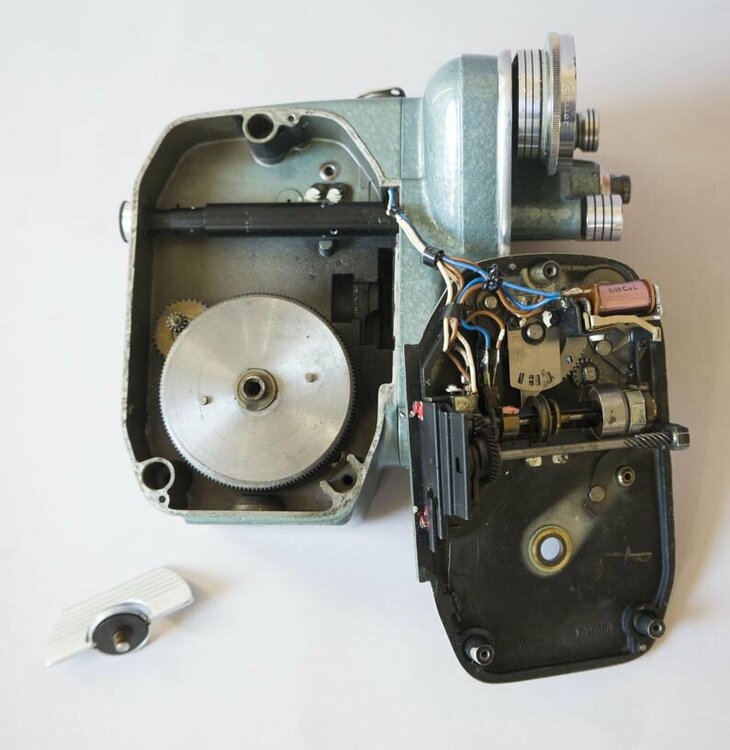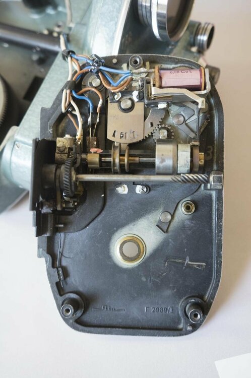 Nebenbei - die Mechanik des Reglers für die vier Bildfrequenzen ist auch ganz interessant. Außerdem hab ich den Eindruck, daß der Verschluß der 88D weniger als 200° Öffnungswinkel hat (wie von @Film-MechanikerSimon in "Unerwartetes von den Film-Kameras Bauer 8 und 88.pdf" geschrieben). Vielleicht gibt es hier Unterschiede zwischen den verschiedenen 88-Modellen. Leider konnte ich es nicht nachmessen, weil ich die Kamera jetzt nicht so weit zerlegen wollte.