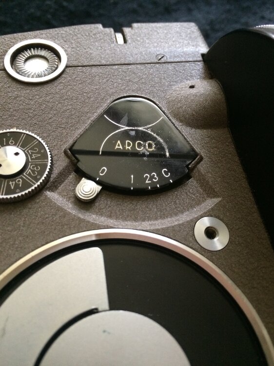 Gratuliere zum funktionierenden Belichtungsmesser. Das gibt´s ja leider auch nicht mehr so oft. Meine beiden Arcos (CR8 und 803A) haben leider beide kaputte Belis. Zum Schildchen der Variablen Sektorenblende: Da gibt´s zweierlei. Meine CR8 hat ein´s aus Emaille, das leicht ballig ist. Meine 803A hat ein flaches aus durchsichtigem Plastik mit Bedruckung von hinten. War wohl eine Sparmaßnahme. Ob die Plastikschildchen auch bei der CR8 verwendet wurden und ob es 803A-Modelle mit Emailleschildchcen gibt, weiß ich nicht. Aber vielleicht weiß das der @Dieter Scherf. Das 75mm-Objektiv ist schon interessant, wenn man gerne mal stärkere Teleaufnahmen macht. Solche Brennweite gibt´s für Doppelacht ja kaum. Es ist auch sehr präzise gebaut. Fühlt sich alles sehr hochwertig an. Der Externe Sucher ist auch praktisch, denn er hat eine eigene Mattscheibe. So kann man sehr gut scharf stellen. Er ist auch abnehmbar. Dann kann man das Objektiv an Kameras mit eigener Scharfstellhilfe verwenden (z.B. Beaulieu, Emel Reflex, ...) ohne daß der Sucher stört. Allerdings muß man sich dann ein Deckelchen bauen, mit dem man den Sucheranschluß verschließen kann. Mein 75er hat eine Meter-Skala: Am Trageriemen von meinem 75er-Objektivköcher hängt noch ein kleines Täschchen mit einem Parallaxenausgleich. Den kann man vor die Sucherobjektive am Revolver der Arco klemmen. Ist dann aber wohl eher für das Standard-Teleobjektiv gedacht, denk ich. Hab ihn noch nie benutzt.