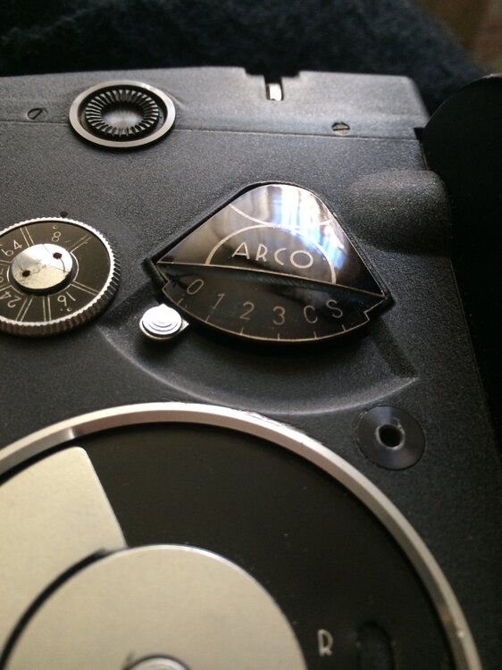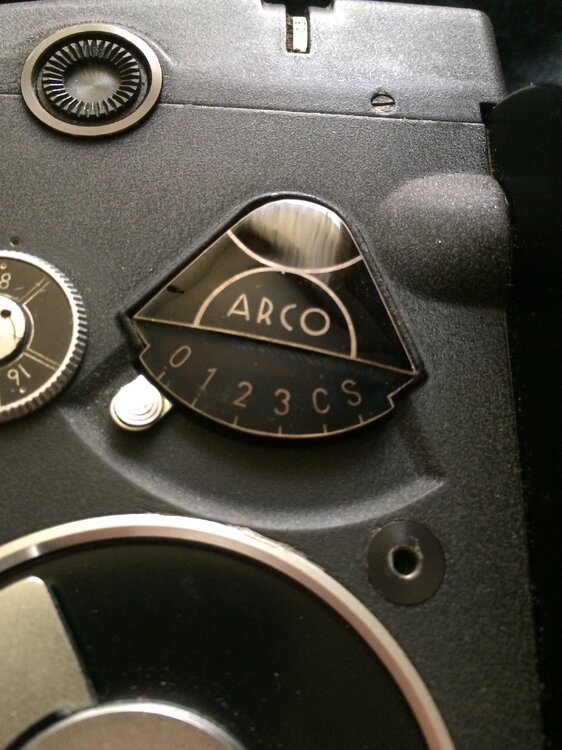 Ja - so ähnlich war auch der Fehler in meiner CR-8, weswegen ich sie zerlegt habe (s. Doku). Das dürfte das Ergebnis von dem sein, was Dieter mit "Kaputtprobieren" gemeint hat. Gibt es denn eine Kamera mit Kunststoffabdeckung, bei der die Rasten die gleichen Abstände haben wie bei der 803-A? Nachtrag: Hier ist eine K804 mit Plastikschildchen und den gleichen Abständen abgebildet: http://www.vintagecameras.fr/arco/modele-804 Hier noch eine: Die kamen, laut Liste von Dieter, im Okt. 1958 auf den Markt. Das letzte Bild von ruessel zeigt eine CR-8 mit Plastikschildchen und "S"-Gravur, ganz rechts. Gab´s denn noch eine, spätere Arco mit "S"-Raste, von der das Plastikschildchen stammen könnte? Falls nicht, bleib ich bei der Annahme, daß es die Modelle CR-8 und K 803-A sowohl mit Emaille- als auch mit Plastikschildchen gab.