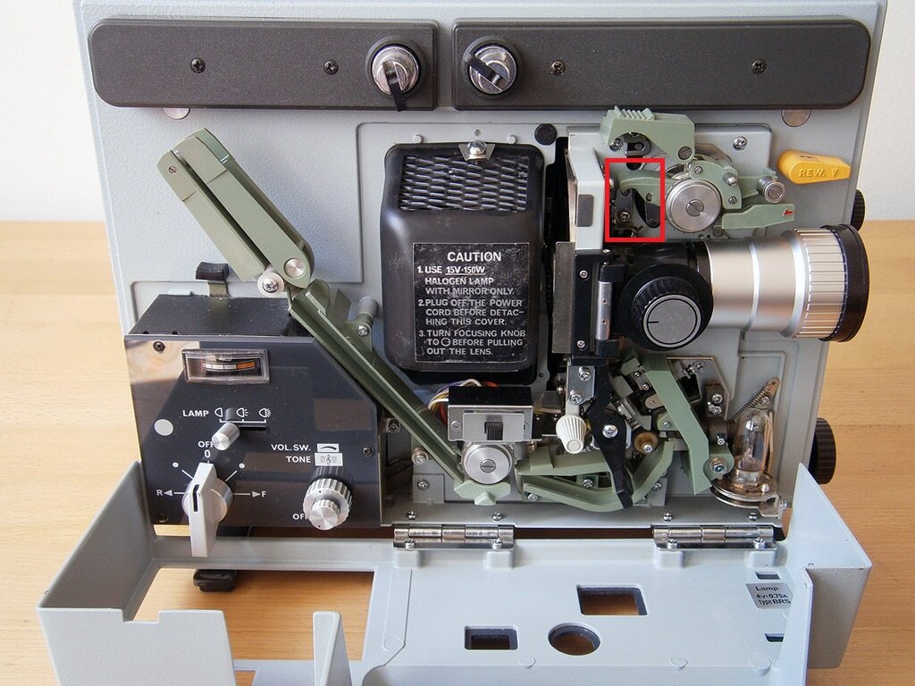 Meine Schraube dort hatte nie einen Sicherheitslack. Ich schaue mir auch noch einmal die Justierung der Lampe an, sprich ob das Licht wirklich senkrecht auf den Film fällt, sprich gleichmäßig. Danach drehe ich noch mal am Schräubchen und werde ein Foto davon machen.