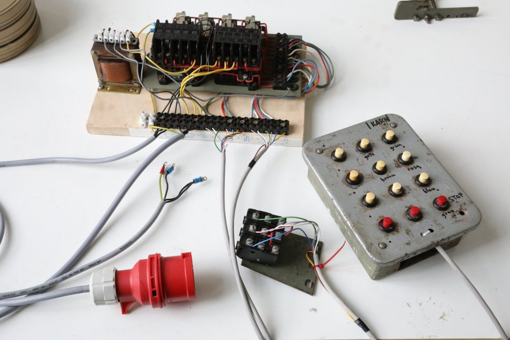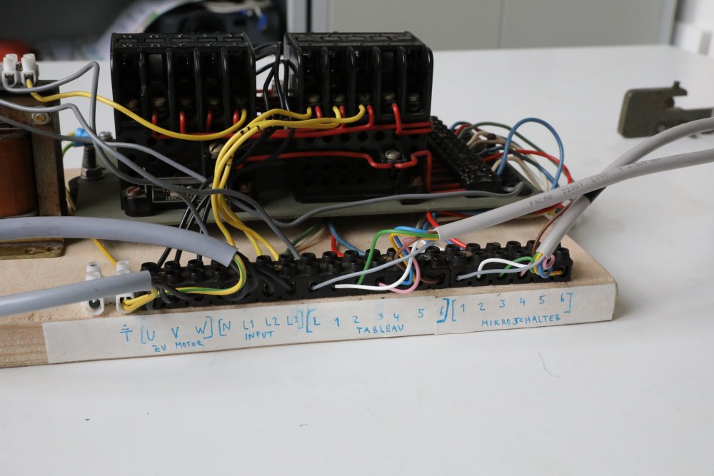Hallo in die nette Runde! wir möchten bei uns im Kino eine neue Kasch-Vorhangzuganlage einbauen. Aus einer Kinoauflösung haben wir die Fahrstuhl-Steuerung und aus seperater Quelle einen Motor. Nun geht es darum, das zusammen zu basteln. Die Verkabelung war vor Ort noch am Stück und wurde hier nun übertragen, d.h Stromanschluss ist klar, Tableaubelegung, Mikroschalterbelegung, etc. Es wäre nur schön, einen Schaltplan zu haben, da wir aus der ursprünglichen 3-Positionen Einheit auf eine 4 Positionen Einheit umsteigen möchten, es gab dort im Lager auch noch Einheiten mit 4 bzw. 6 Positionen. Ich habe schonmal die 3-Positionen Einheit mit der 4-wegigen getauscht. Das heisst man bräuchte noch einen vierten Endschalter, und seine Belegung. Alles erstmal provisorisch auf einer Holplatte montiert. Ziel ist ein Kaschsystem mit vier Positionen: 2.35 - 1.85 - 1.66 - 1.37 - anfahrbar aus jeder Position. Ist das mit unserem Fund überhaupt zu realisieren? Ich denke, die Bilder sagen Erfahrenen in diesem Gebiet mehr als mein laienhaftes Gerede :) Bin um jeden Ratschlag dankbar, alternativ auch dankbar für Angebote über etwas "zeitgenössischere" Schaltungen. Liebe Grüße und Dank schonmal vorab, Philip