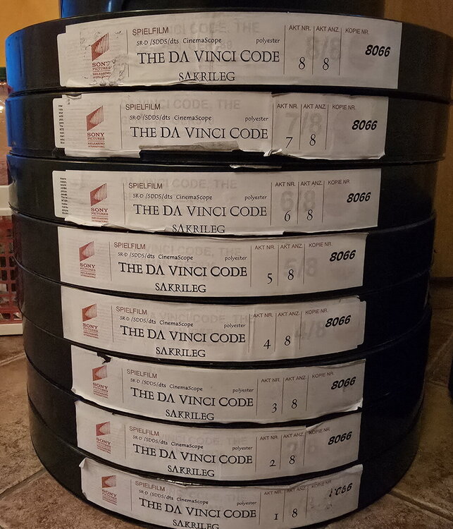 Verkaufe Filmkopie The Da Vinci Code – Sakrileg von 2006. Regie führte Ron Howard. Zu den Darstellern gehören unter anderem Tom Hanks, Jean Reno, Audrey Tautou, Jürgen Prochnow und Ian McKellen. 8 Akte, alle mit originalen Start- und Endbändern Filmkopie ist in einem sehr guten bis ausgezeichneten Zustand Die Filmbilder wurden bei einer Vorführung im Gartenkino gemacht Der Verkauf erfolgt ohne Rechte und ausschließlich für den Privatgebrauch ohne jede Gewährleistung. Versand über Hermes in 2 Kartons kostet ca. 14 €. Preisangebote gern per persönlicher Nachricht.