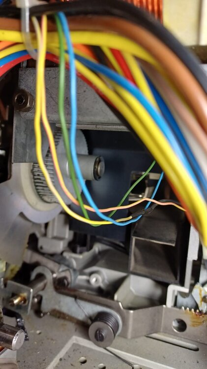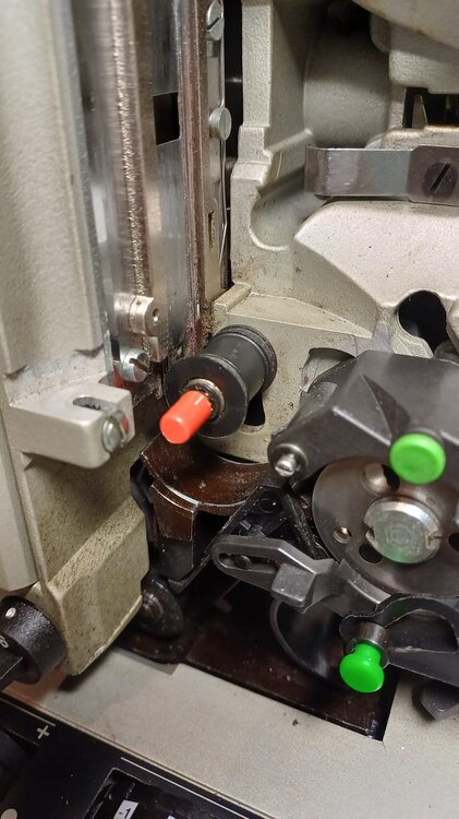 6. Puh. Den anderen P8 hatte ich auch noch gangbar gemacht, das ging relativ easy. Der Selecton hingegen ist schon sehr anstrengend. Ein typisches altes, deutsches Gerät. Modulare Bauweise nicht wirklich, dafür Schlitzschrauben, Unterlegscheiben und Kontermuttern noch und nöcher. Dazu schön vollgestopft, nirgends kommt man mal eben dran. Aber genug gejammert!😅 Passend zur Überschrift bin ich noch auf diese Problematik gestoßen: Der "untere Schlaufenformer" mit dem roten Knopf lässt sich ebenso extrem schwer bewegen, siehe Fotos. Ich denke nicht dass das normal ist, bzw. kann es auch schon der Grund für einen ratternden Betrieb sein? Sieht nach einer Lebensaufgabe aus daran zu kommen... Viele Grüße