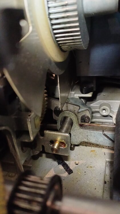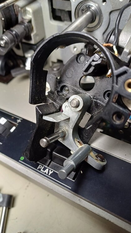 1. Es ist halt eine andere Epoche. So DAT-Rekorder oder 80er, 90er Jahre Unterhaltungselektronik ist halt, ich nenne es mal durchdachter gebaut. Modularer, einfacher in der Produktion, einfacher im Service. Der Selecton ist sicher hochwertiger, aber es macht keine Laune daran zu arbeiten. Und tatsächlich bringt mich das Gerät weiter zur Verzweiflung, aber ich gebe nicht auf. Auch wenn mir jeder einzelne Finger mittlerweile weh tut. Nachdem ich das Gerät wieder weitgehend zusammengebaut hatte, fiel auf, dass auch der obere Schlaufen-Dings-Hebel völlig fest sitzt. Ich dachte zunächst das wird einfacher.🙈 Erst lief es planmäßig, doch dann liess sich das obere Zahnrad nicht von der Stange abziehen, weil das Kugellager auf jener Stange festgegammelt war. Ging nicht mit Gewalt, noch mehr Gewalt, Öl oder Hitze raus, no chance. In einer Notfall-OP musste ich dann die ganze Stange ausbauen, dazu leider auch Teile verbiegen... sehr unprofessionell aber besser als wegschmeissen, denke ich. Und selbst danach bekommt man den Hebel ja nicht ohne weiteres raus... Okay, niemand hat damit gerechnet, dass man dort jemals ran muss... so weiter gehts Grüße