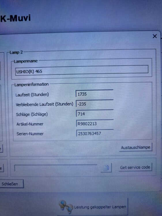 3. Moin, wollt mal in die Runde fragen, wie lange ihr so die Lampe USHIO 465 (bei uns im Barco 6E) laufen lasst? Mir ist schon eine neue Lampe nach 50 Std geplatzt. Aus meiner Perspektive fand ich das garnicht so schlimm, da der Lampeneinschub recht gut abgeschirmt ist. Hab mal ein Bild vom aktuellen Stand angehängt. Liebe Grüße.