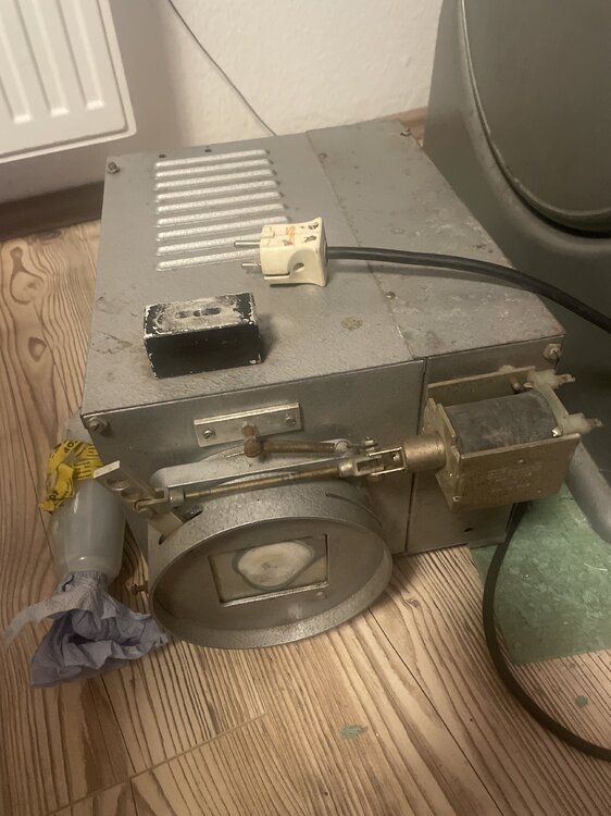 Nachdem der Winter mir jetzt etwas Zeit verschafft hat mal wieder mit der Maschine zu beschäftigen, bin ich auch schon wieder mit einem großen Fragezeichen hier im Kopf… ich hab jetzt alles original getreu wieder hergestellt mir 380 V in den Schaltkasten legen lassen und über einen Schütz so verkabelt, dass ich die Maschine direkt bedienen kann, wie es mal gedachtvwar. Jetzt war die Freude groß. Nur leider läuft der Motor irgendwie nicht an, wie auf dem Video zu sehen ist. Auch macht der Schalter für den Anlasser ein ziemlich anstrengendes Geräusch und ich bilde mir auch ein, dass es etwas riecht, aber das kann auch normal sein. Den Abnehmer für die Fotozelle hab ich auch noch nicht gefunden, vielleicht weiß einer von euch, wo er ist IMG_9884.mov