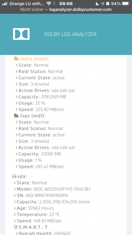 Mit Platte für Platte neu anlegen meinte ich die Prozedur die man bei einer defekten Platte macht um diese zu ersetzen. Eben dann dreimal. Er hat 3 Einschübe mit 3x2TB Platten. Fehler wird nur im log angezeigt. md0 ist jetzt zu 42% genutzt. -