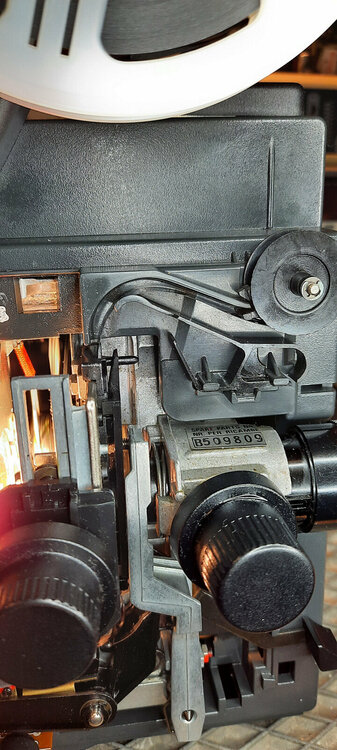 Hallo, der Tipp war prinzipiell richtig, nur nicht die Auf- sondern die Abwickelseite. Die Aufwickelseite wird ja durch das über den Schneckentrieb fest angetriebene Zahnrad mit Filmmaterial bedient. Die Abwickelseite, hat direkten Einfluss auf die Schlaufe, wie ich jetzt festgestellt habe. Das zeigte sich am Anfang nicht so deutlich. Ich habe den Arm der Abwickelseite abgenommen. Das Getriebe im Arm ist leichtgängig. Der Armantrieb selbst fühlt sich zäh an. Nachdem dieser nun leichtgängiger ist, läuft der Film nahezu sauber durch. Sobald man die Abwickelspule abbremst, fängt das Bild wieder an zu zittern. Dann musss man den Schlaufenformer drücken, wodurch sich das Bild wieder beruhigt. Was noch gut täte, wäre den Anpressdruck des zur Reinigung abnehmbaren Armes, der die Druckplatte der Filmbühne beinhaltet, etwas zu vergrößern. Ob und wie man das macht muss ich noch schauen.