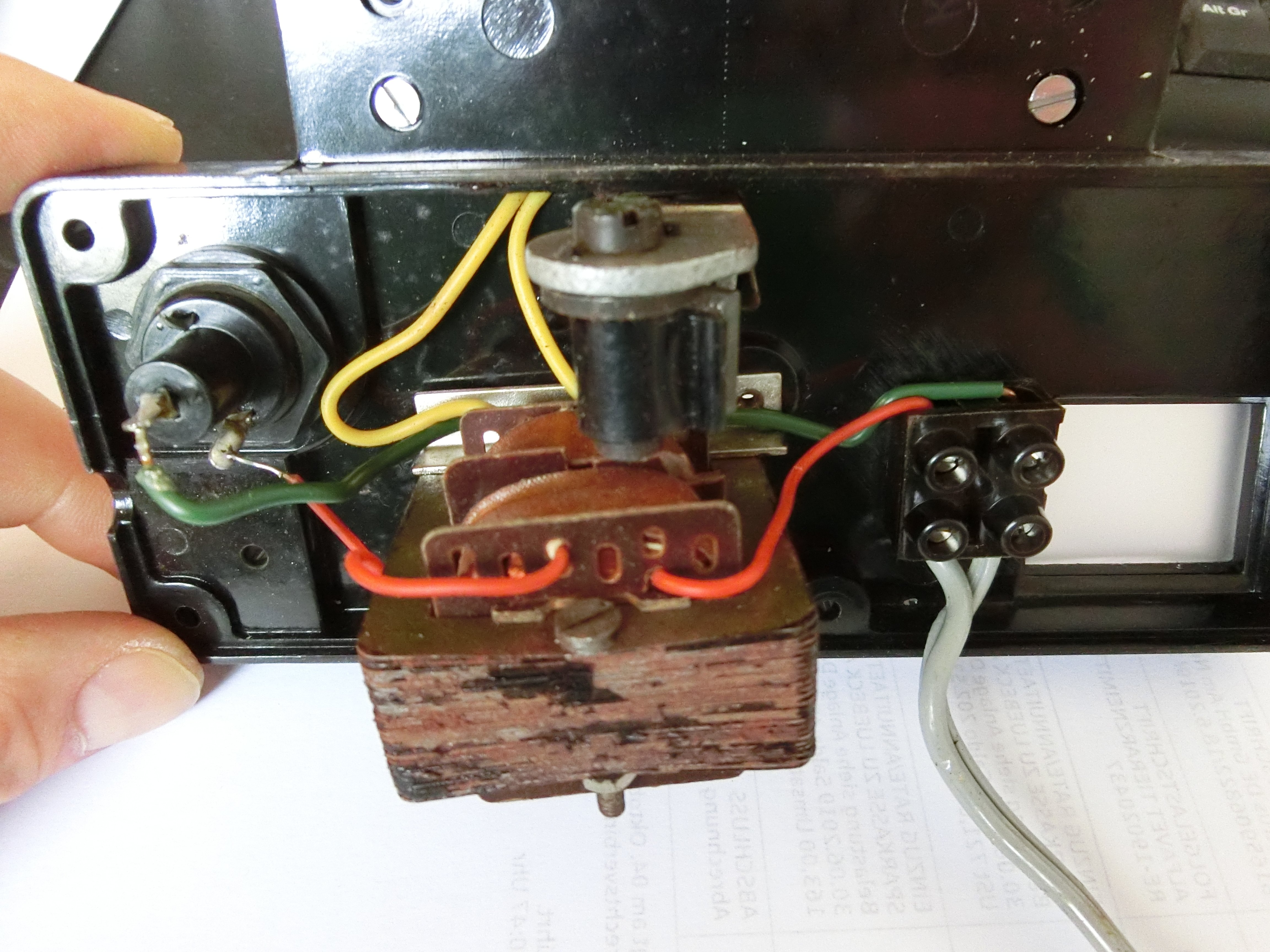 Könnte ich auch evtl. erst mal versuchen mit Hilfe einer Injektionsnadel WD40 o.ä. an die Wellen zu bringen? Neuerdings brennt übrigens die Lampe leider nicht mehr. Strom kommt am Gerät an und geht auch weiter zu der großen Spule. Die Birne ist o.k., Sicherung o.k. Das ganze funktioniert ja nach meinem Verständnis wie ein Trafo, richtig? Leider besitze ich keinen Durchgangsprüfer und auch keinen Stromprüfer für kleine Voltzahlen. Ich muss irgendwie schauen, ob Strom überhaupt bei der Sicherung ankommt,(grüner + roter Draht). Die große Spule hat etwas "Flugrost". Keine Ahnung, wie sich das wiederum auswirkt. -