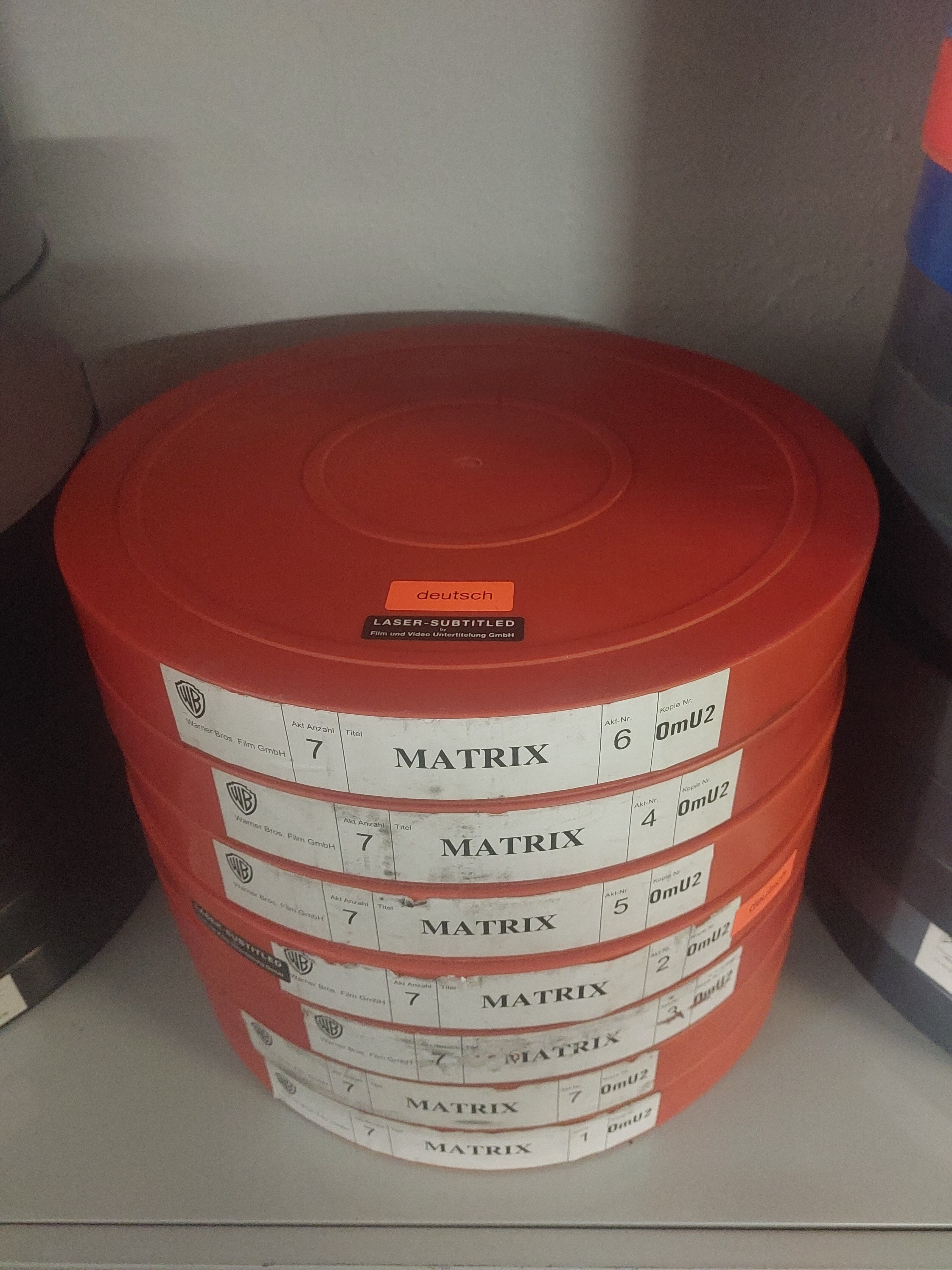 flimmerfan folgt jetzt dem Inhalt: Filmtransport Steenbeck schneidetisch , MATRIX 35mm OV mit Untertitel Deutsch , DTS-Sounddateien und 7 Weitere